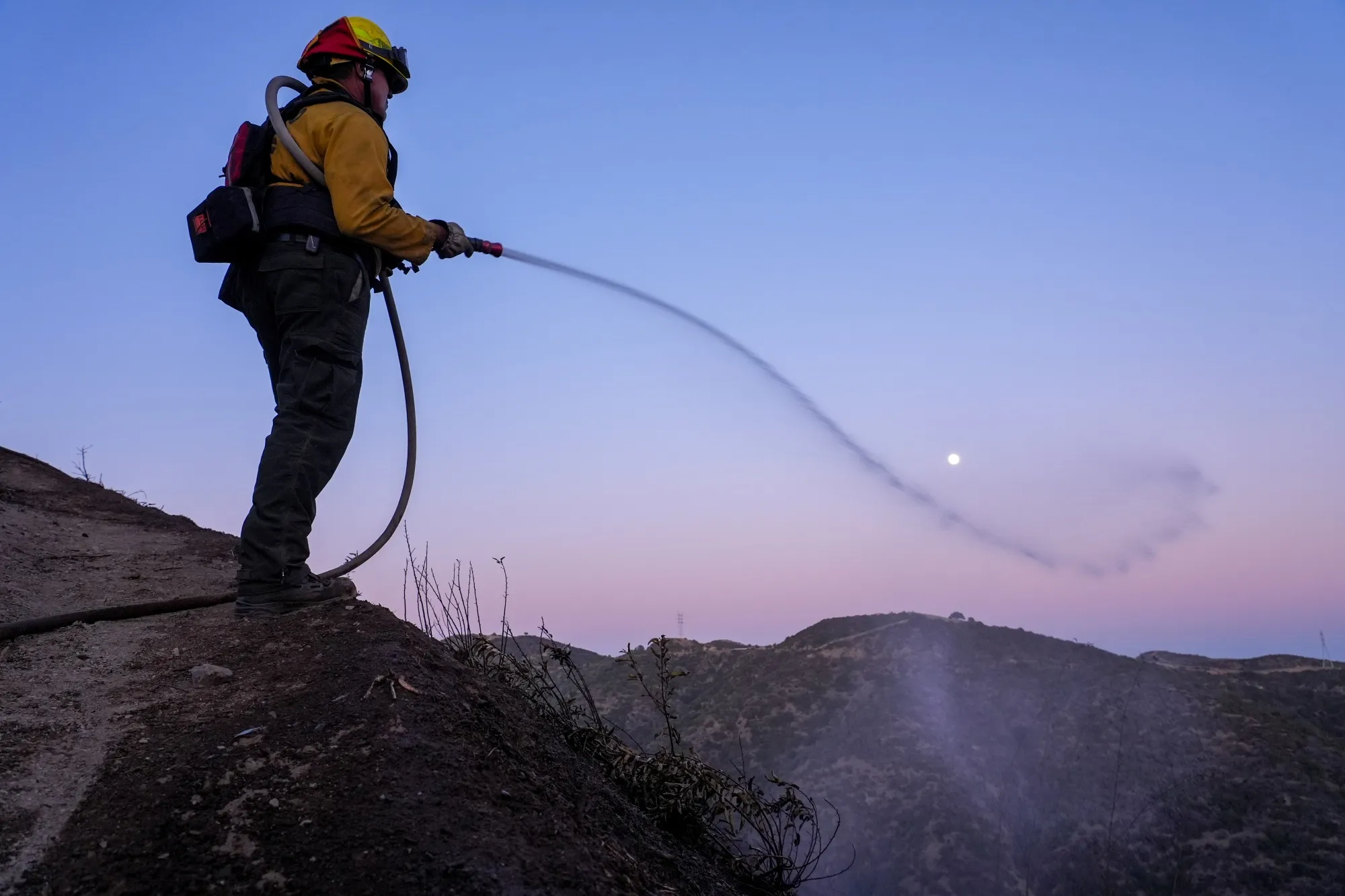 自风驱动的火焰爆发以来,已经过去了一周多,火势正逐渐得到控制。消防队员在陡峭的山丘上行进,切割隔离线并试图扑灭热点。