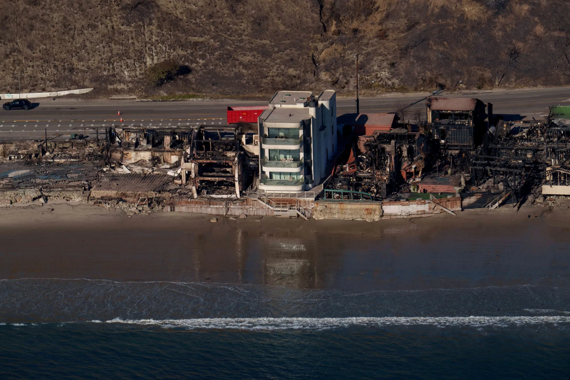 马里布的海滨住宅,帕利塞德火灾在数百万美元的房屋中肆虐。摄影师:埃里克·泰尔/彭博社