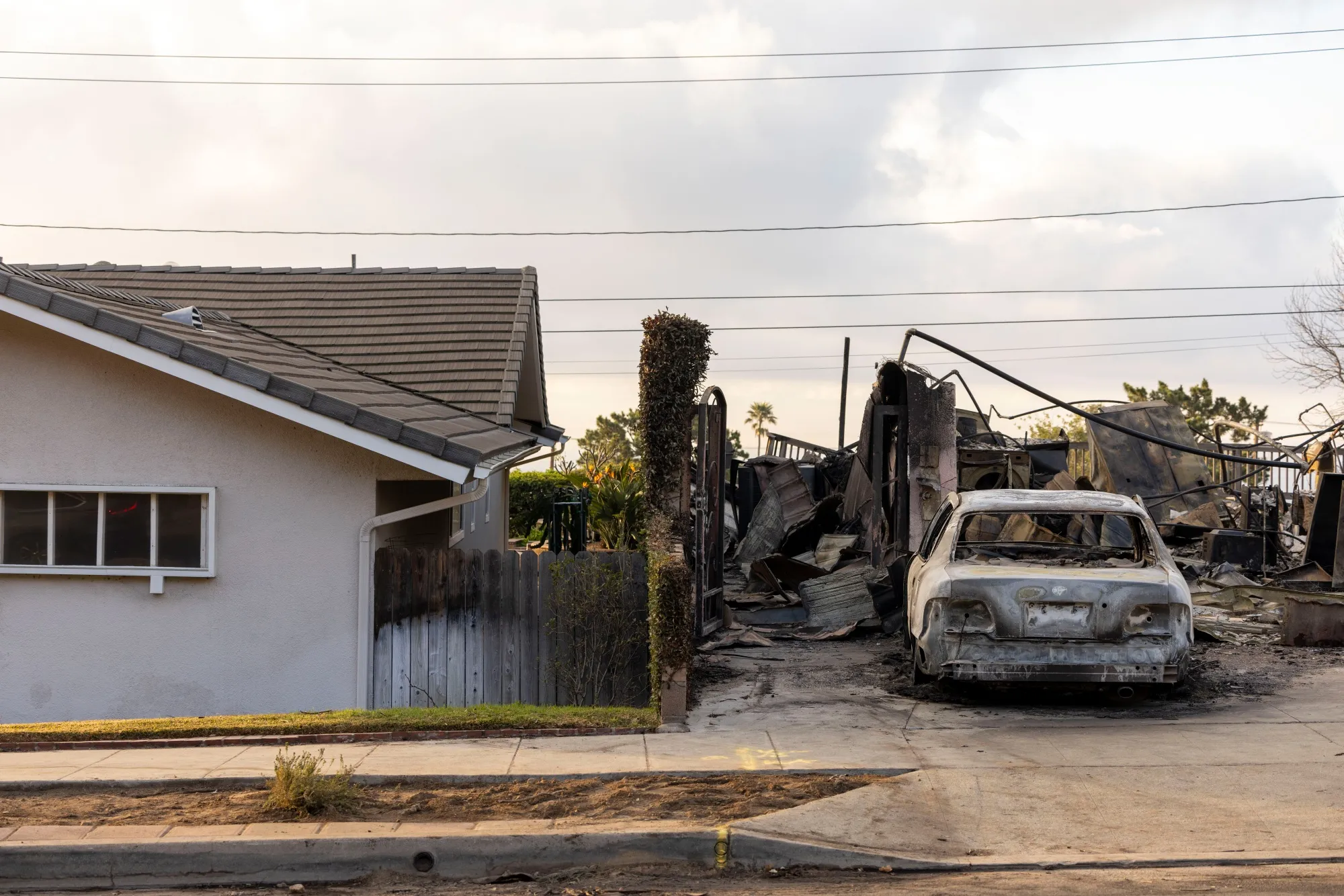 在太平洋帕利塞德斯,茂密的树木在街道上投下阴影,街道上的房屋化为灰烬,只有砖烟囱屹立不倒。在马里布,一座孤零零的房子矗立在海滩上,周围是被烧毁的邻居的废墟。艾顿火灾摧毁的中产阶级社区阿尔塔迪纳的工匠风格平房已成废墟。学校建筑被毁,迫使数千名学生返回疫情期间的远程学习。