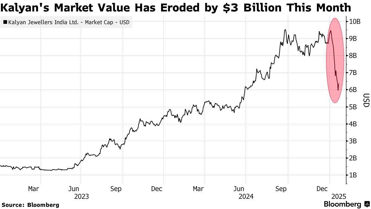 Kalyan珠宝商的股票在本月下跌了约30%,而去年由于对黄金饰品的需求和公司的扩张计划,其股价翻了一番。根据彭博社汇编的数据,追踪该股票的九位分析师中有八位对其股票给予买入评级。