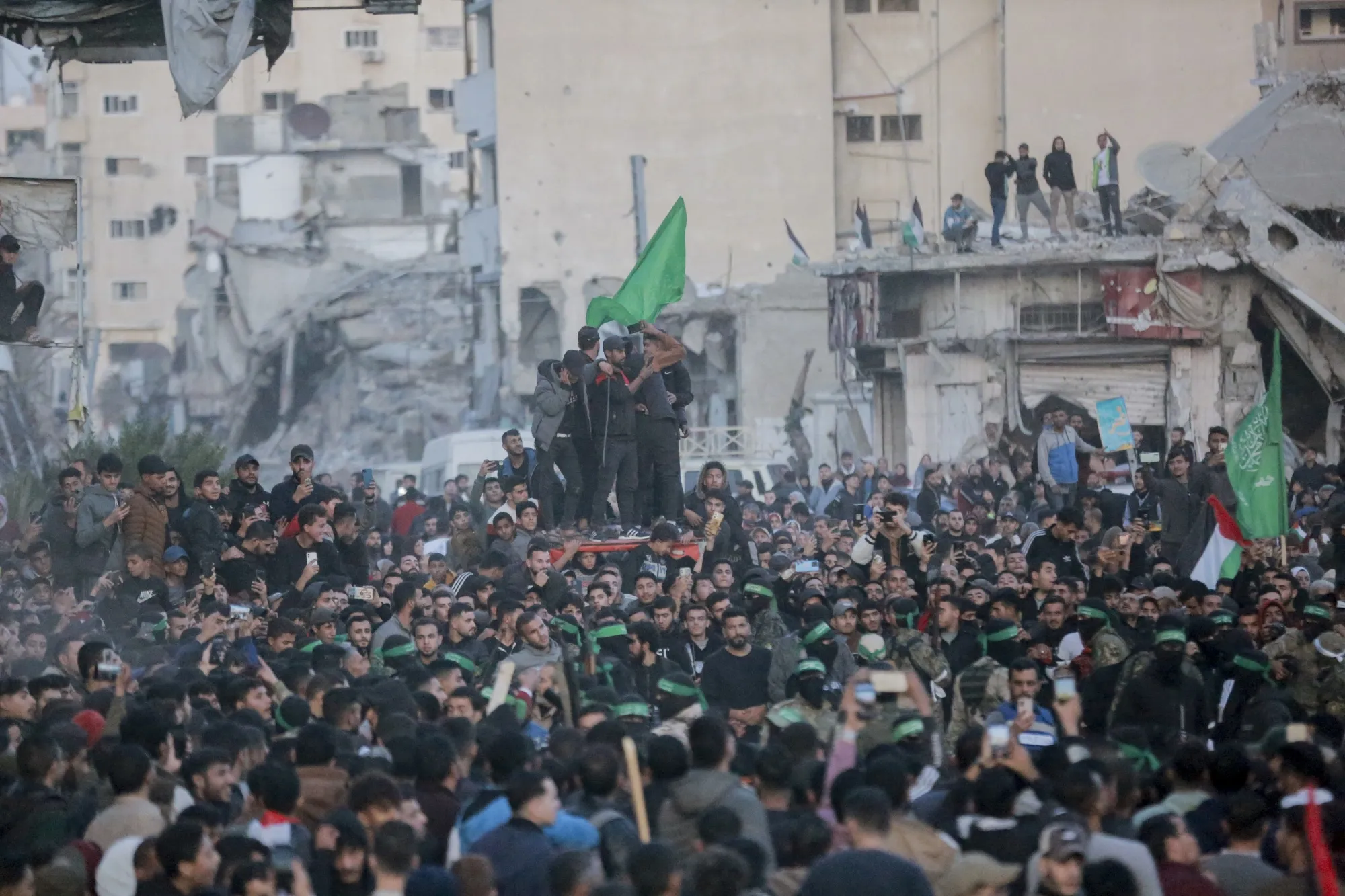 以色列与哈马斯的停火协议,由卡塔尔、埃及和美国调解,规定了一个六周的过程,根据复杂的公式,释放33名以色列人以换取约1900名巴勒斯坦人——30名囚犯换取平民人质,50名换取士兵。下一次交换定于星期六。同时,以色列军队预计将撤退到加沙的边缘,而人道主义援助将进入。