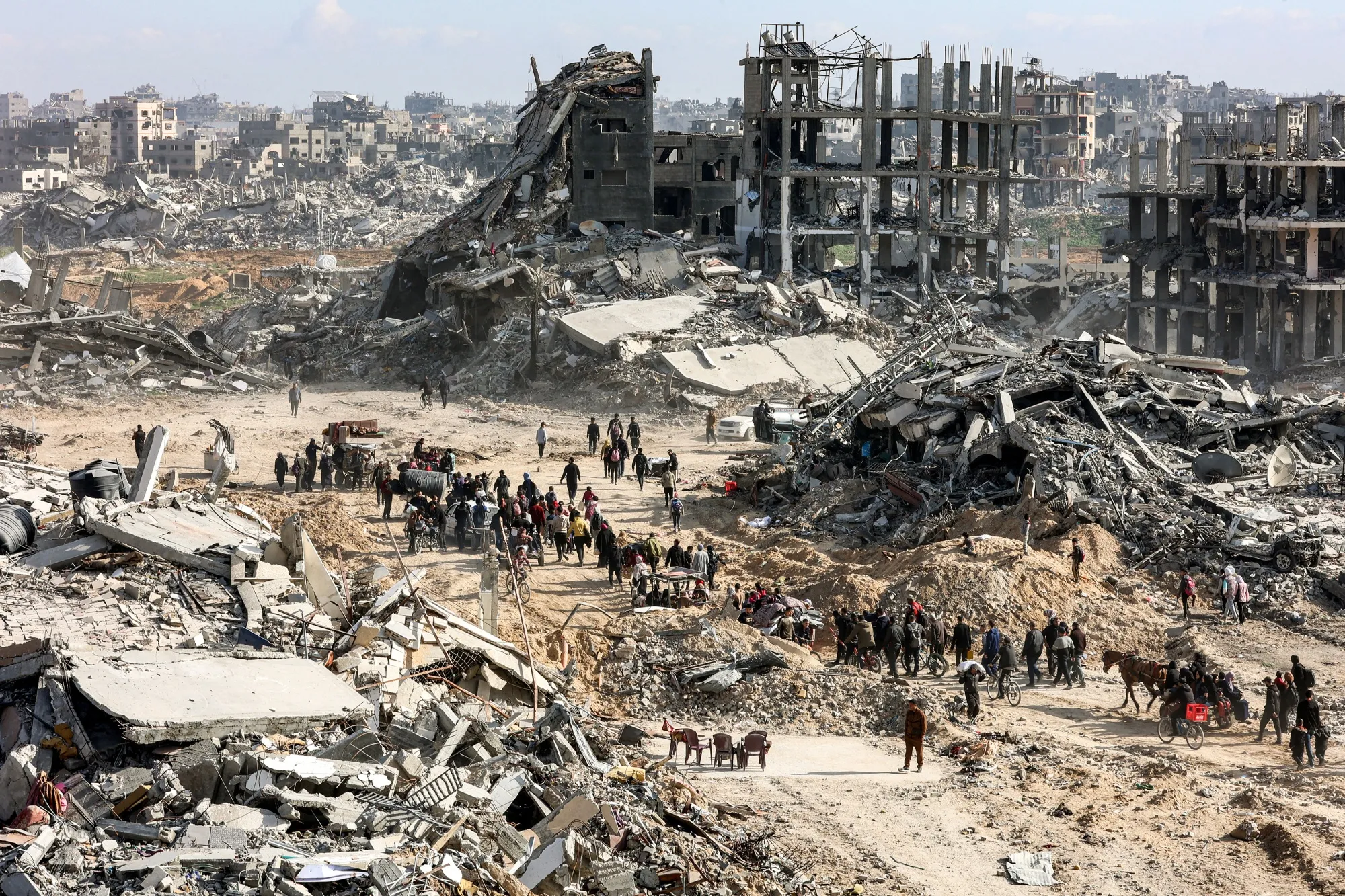 人们在加沙北部贾巴利亚的萨夫塔维街上走过倒塌建筑的废墟,时间是1月20日。摄影师:奥马尔·阿尔-卡塔/法新社/盖蒂图片社自2023年10月加沙战争爆发后,真主党便开始以支持哈马斯的名义攻击以色列,而在11月底签署了一项停火协议,以暂停随之而来的黎巴嫩冲突。该协议——旨在加强黎巴嫩和国际力量在维护和平中的作用——将于1月27日到期。