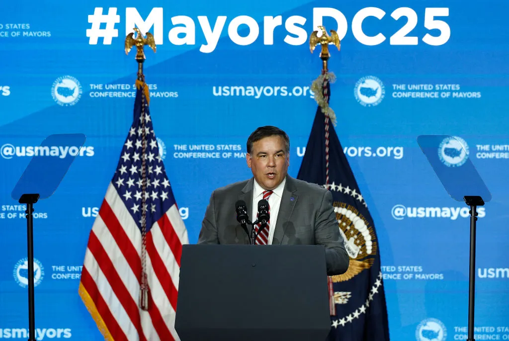 哥伦布市市长安德鲁·J·金瑟在华盛顿特区举行的美国市长会议第93届冬季会议上发表讲话。