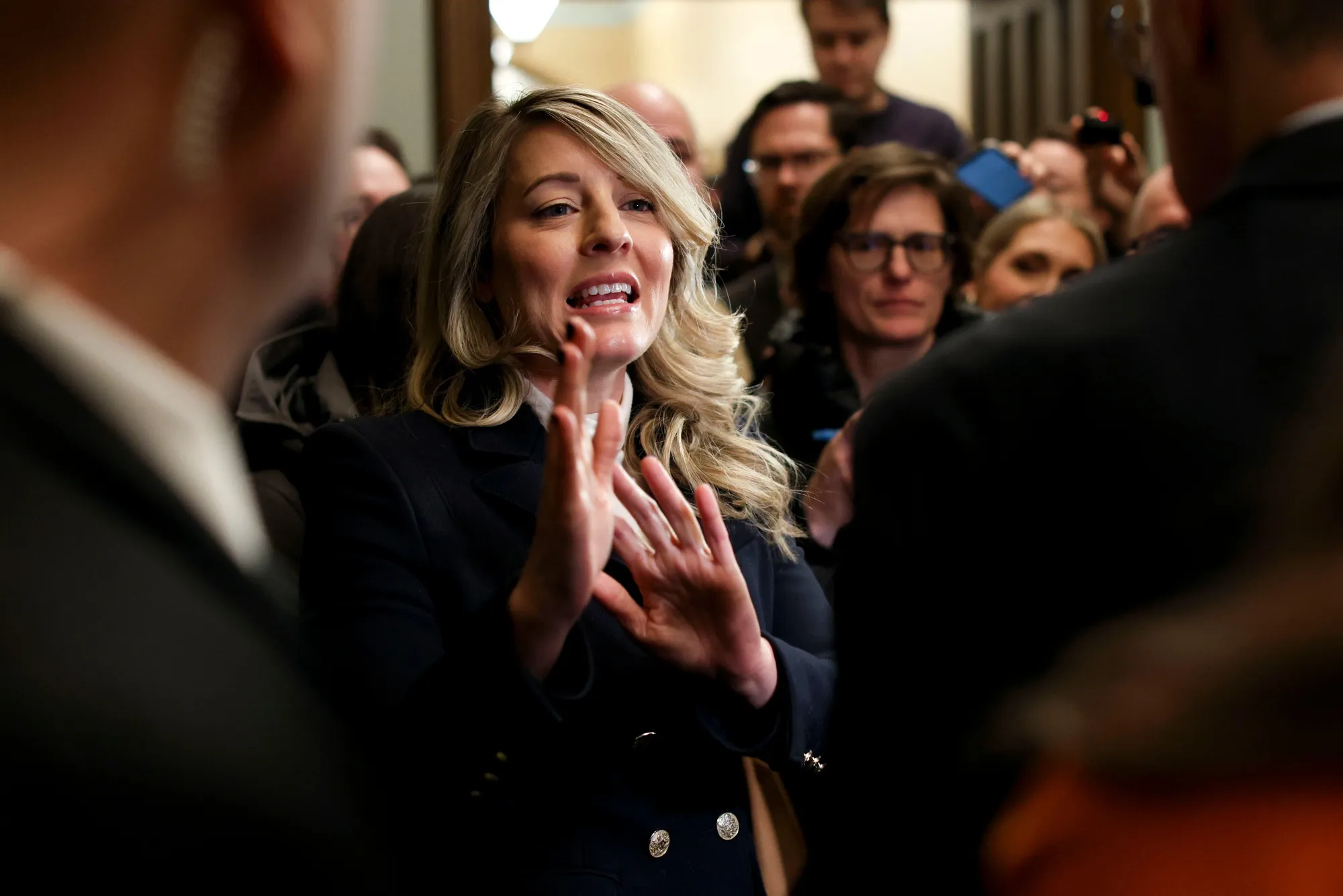 梅拉尼·朱莉摄影师:大卫·川井/彭博社“我们非常谨慎,”外交部长梅拉尼·朱莉在特鲁多内阁为期两天的退修会议上告诉记者。“继续努力,确保我们捍卫加拿大利益是非常重要的。”
