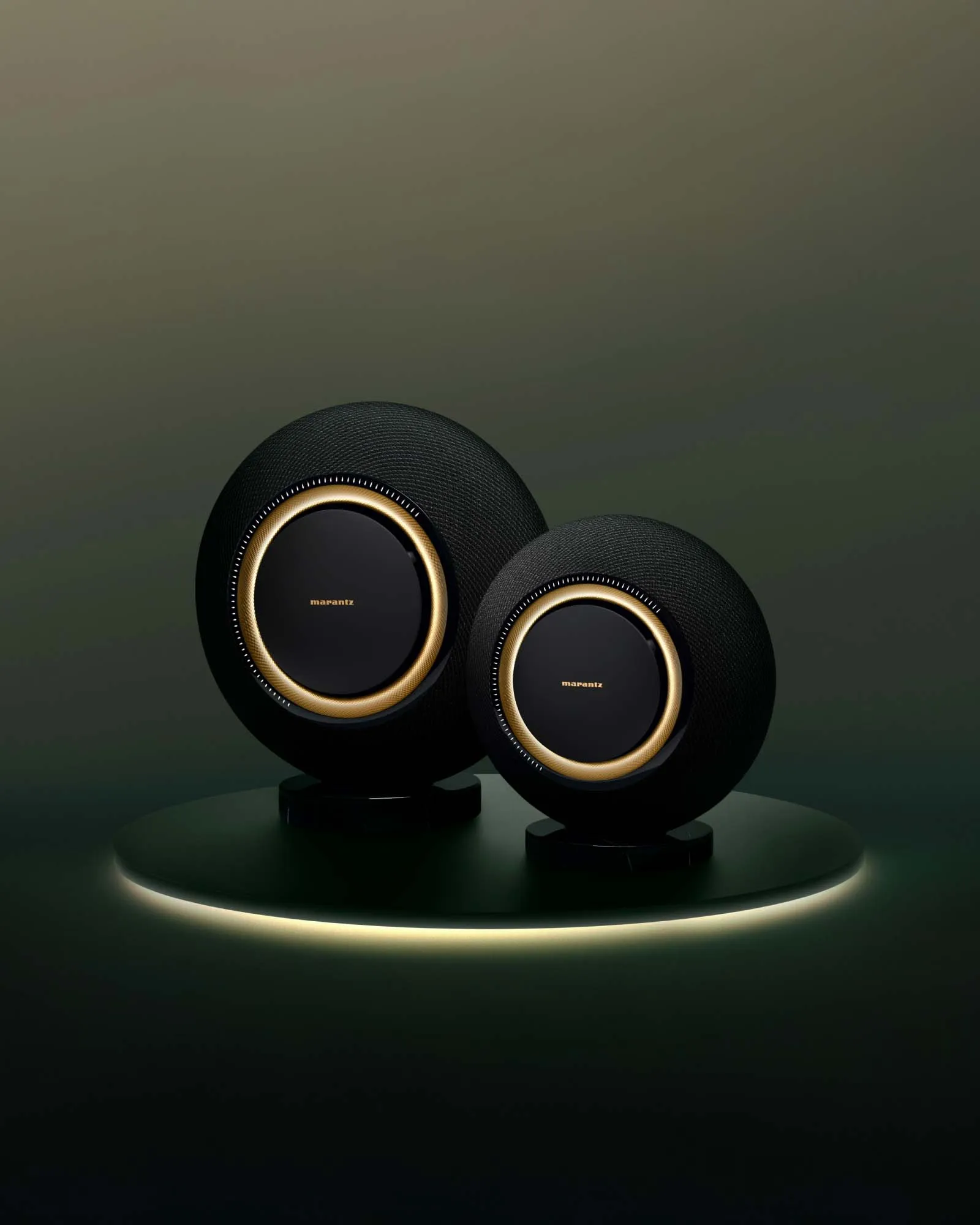 马兰士大地平线(左)和地平线无线扬声器来源:公司日本高保真音频工程师马兰士,放大器、播放器和音响系统的制造商,开发了一些令人印象深刻的扬声器。这款5,500美元的大地平线提供370瓦的内置放大功率,三个高音扬声器和四个中音驱动器以不同角度发声,以及一个中央8英寸的低音炮。三种由回收海洋塑料制成的可持续面料颜色选择,使得这种圆盘形无线设备适合多种风格和大小的房间。