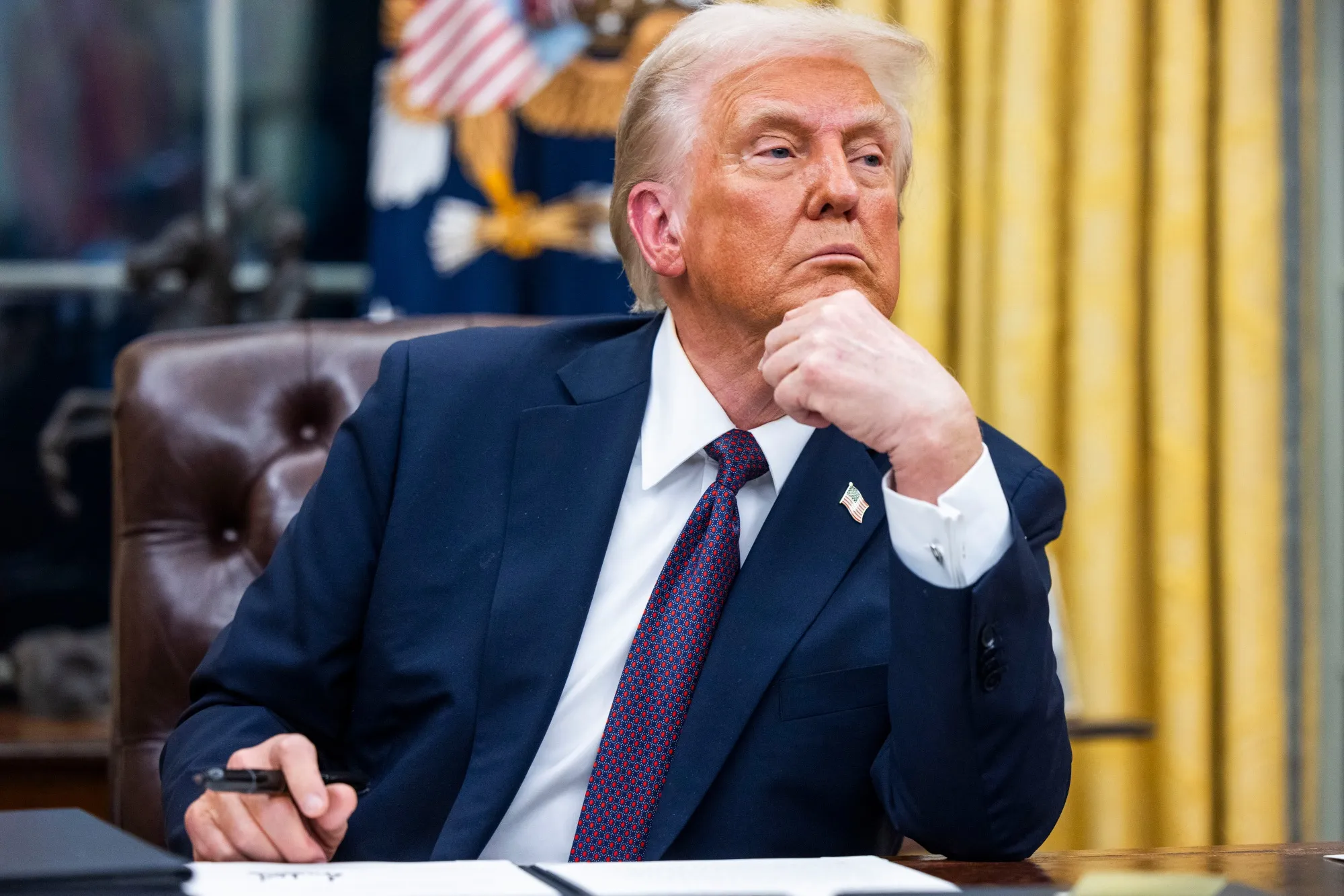 美国总统唐纳德·特朗普在白宫椭圆形办公室的签署仪式上签署行政命令。