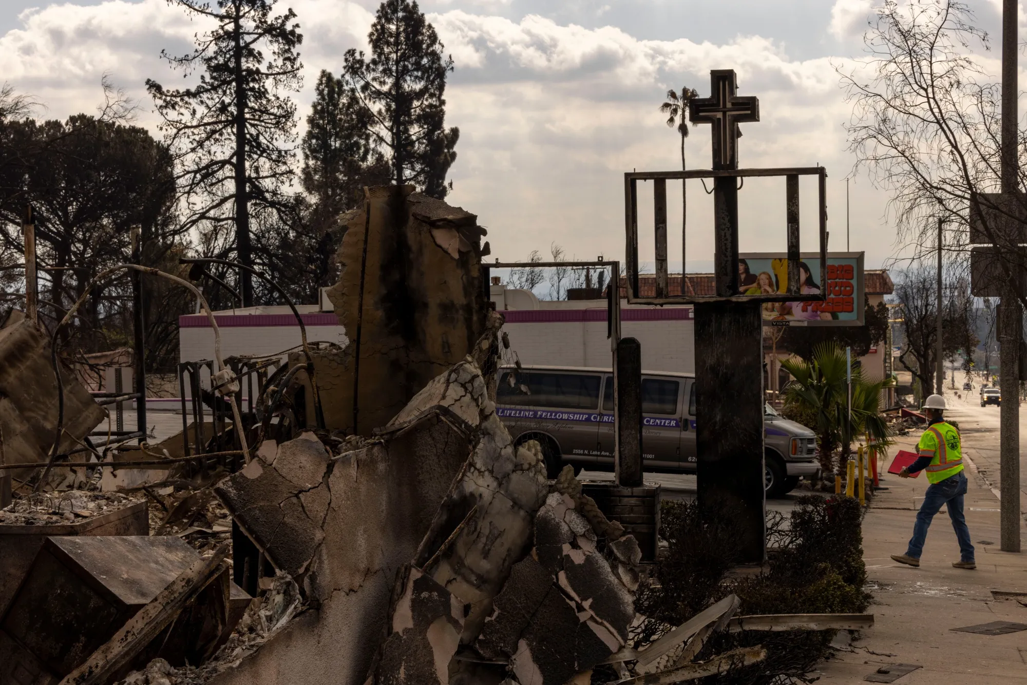 加州阿尔塔迪纳的伊顿火灾摧毁的房屋,日期为1月20日。