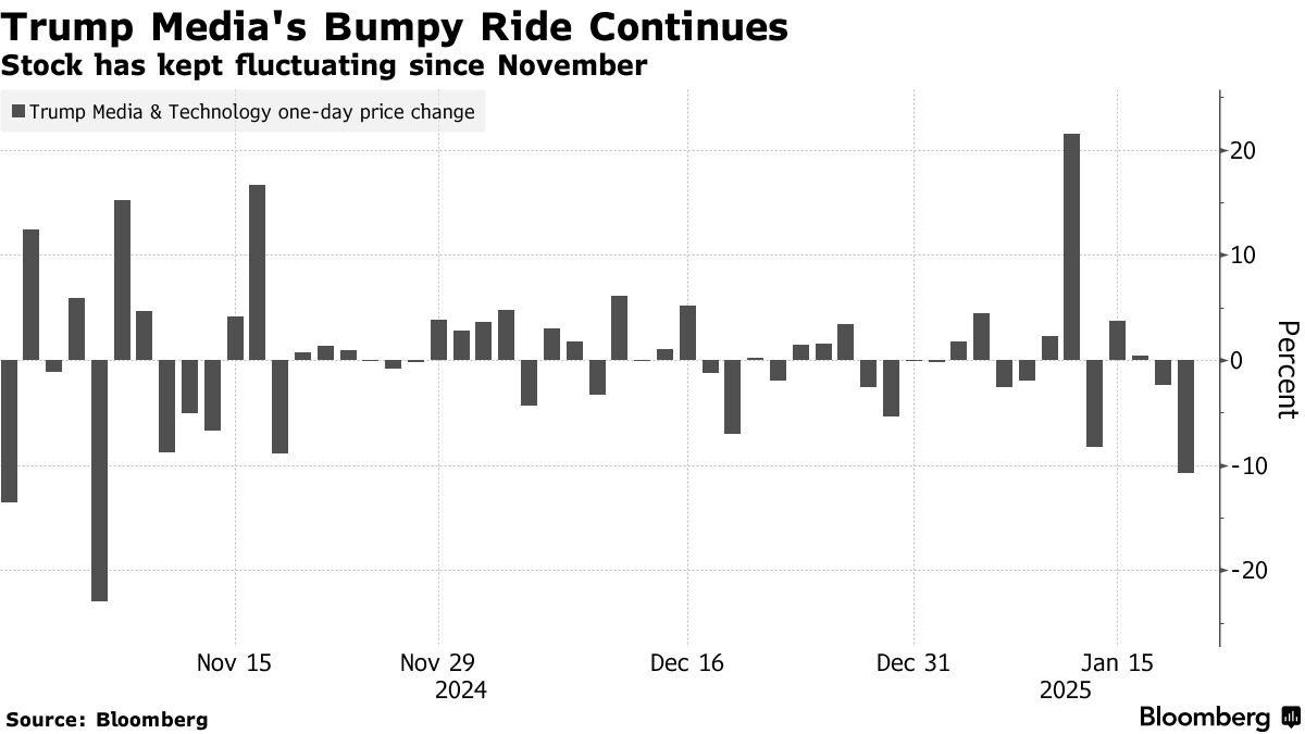 特朗普媒体与科技集团公司(Trump Media & Technology Group Corp.)的股票下跌了多达14%,创下自选举周以来的最差表现。特朗普的社交媒体公司一直受到剧烈波动的影响,股票在1月13日时曾上涨22%。