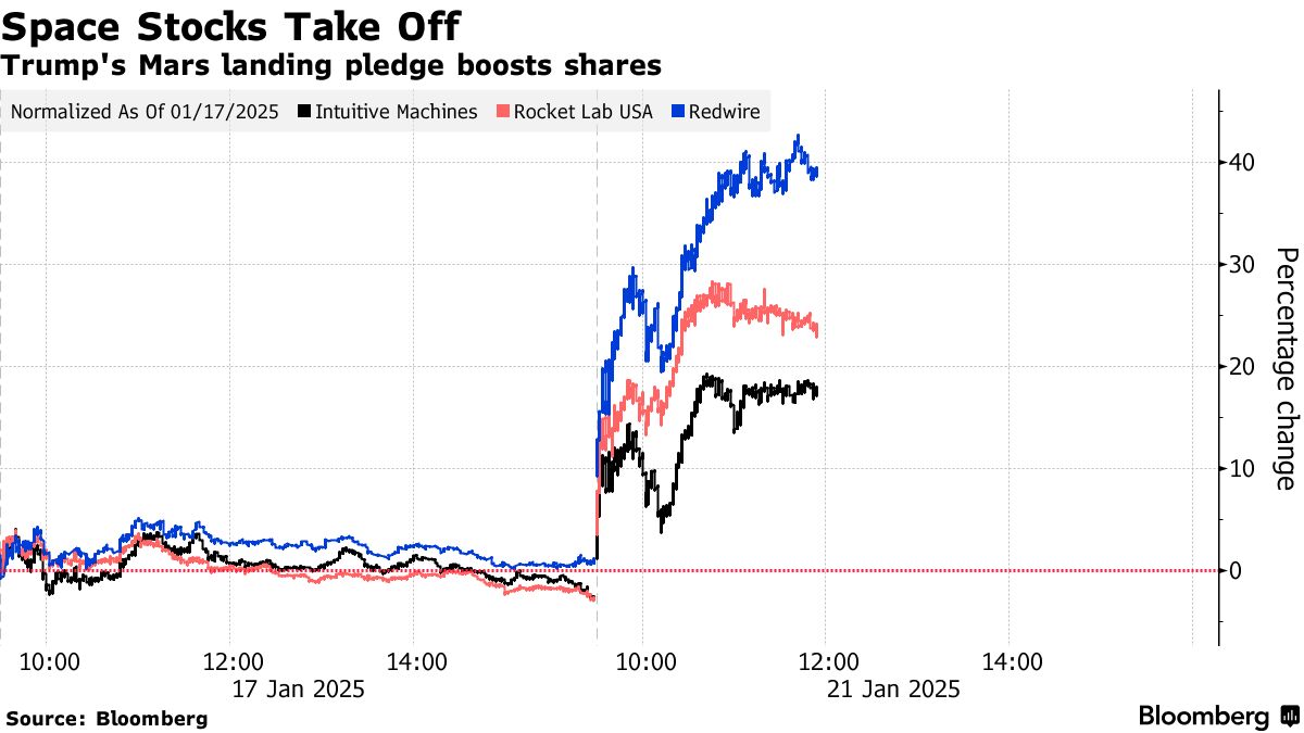 在特朗普承诺“追求我们的显性命运进入星空”的背景下,太空公司的股票大幅上涨,计划将美国宇航员送上火星。