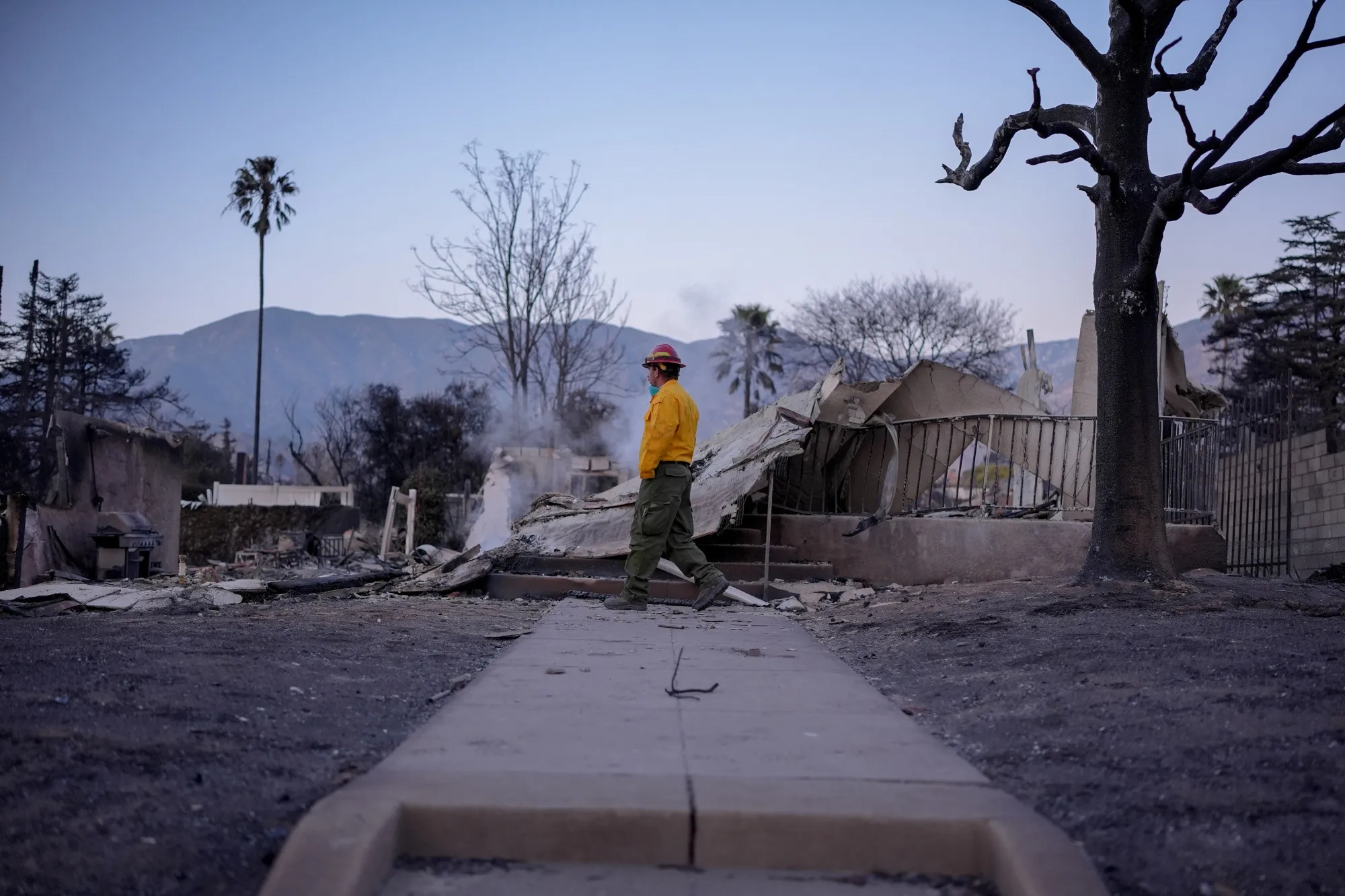 一名消防员在伊顿火灾后检查一处被毁的房屋。摄影师:凯尔·格里洛特/彭博社 1月20日的晚间简报未能在照片说明中识别劳伦·桑切斯。我们对此错误表示遗憾。