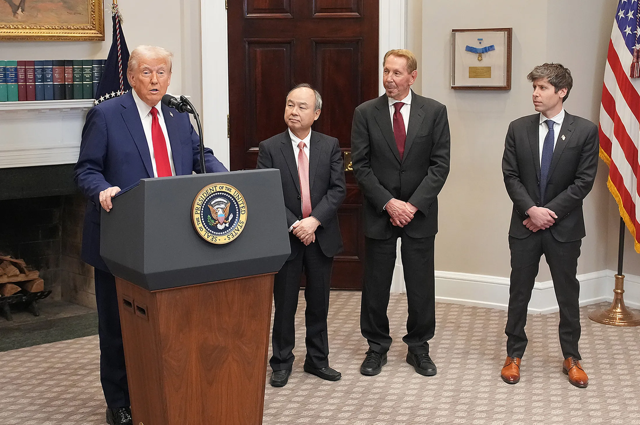 与此同时,特朗普与 软银、OpenAI 和甲骨文的首席执行官 一起宣布了一项新的 人工智能投资计划。软银的孙正义、OpenAI 的山姆·阿尔特曼和甲骨文的拉里·埃里森于周二下午与特朗普一起揭晓了对 AI 基础设施的初始 1000 亿美元投资——在未来四年内可能扩大到 5000 亿美元。一天前,特朗普 撤销了 前总统乔·拜登关于人工智能的广泛行政命令——立即停止了对人工智能开发者的关键安全和透明度要求的实施。
