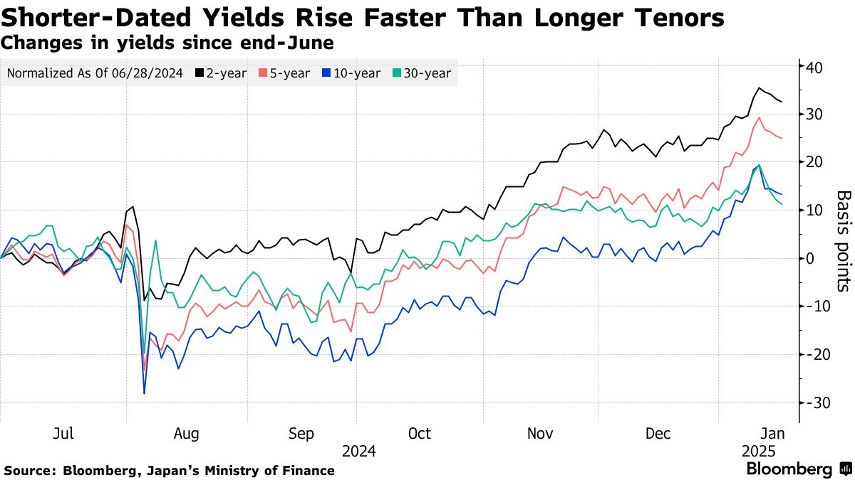 日本的基准10年期收益率上周攀升至1.255%,为2011年以来的最高水平。日本银行的政策利率目前为0.25%,在去年结束其激进的货币宽松政策后,已提高了两次利率。