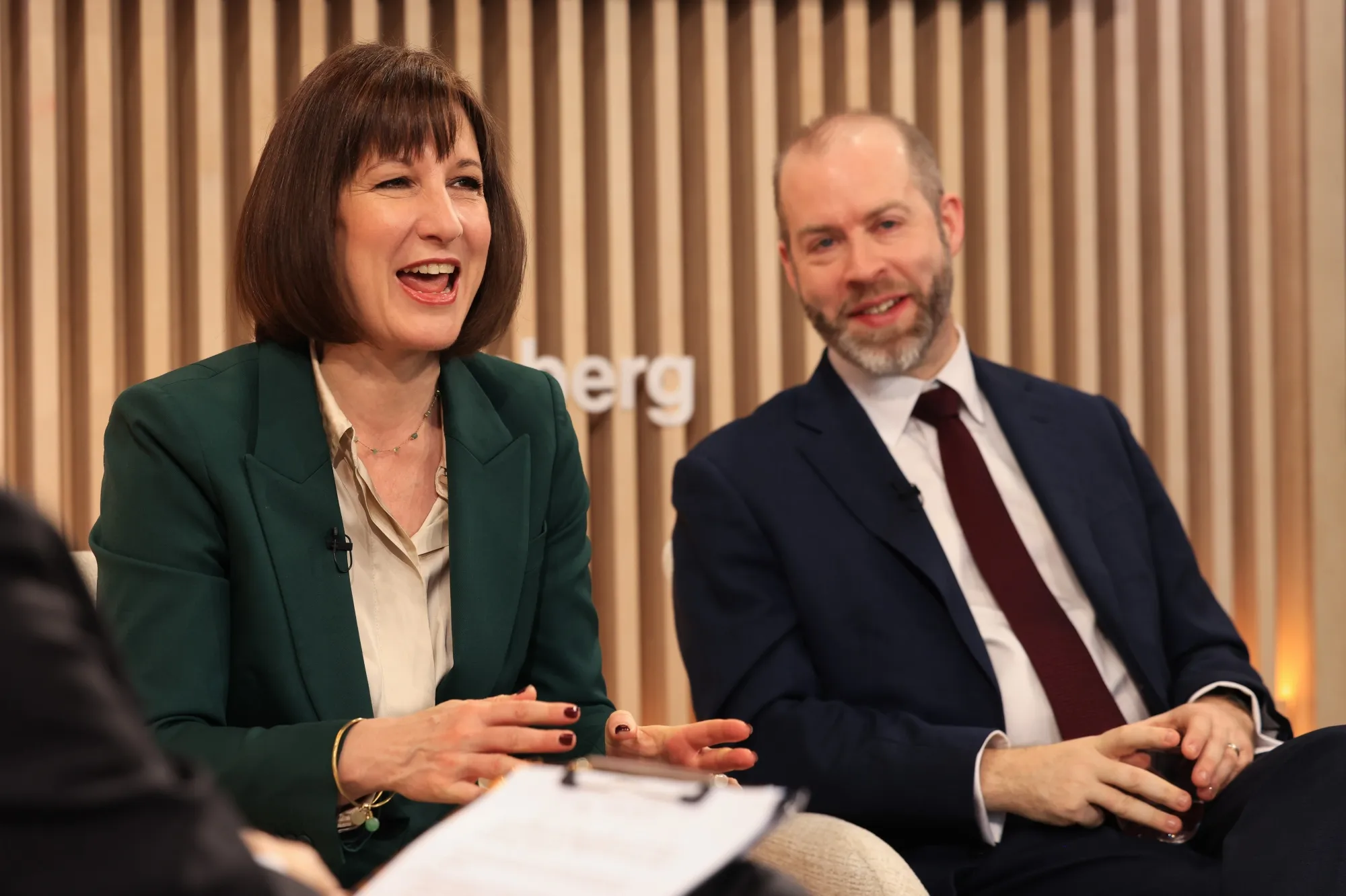 瑞秋·里夫斯,左,1月22日在达沃斯的世界经济论坛上于彭博社大厦。摄影师:克里斯·拉特克利夫/彭博社财政大臣 瑞秋·里夫斯开玩笑说埃隆·马斯克对世界领导人的在线“恶搞”,这是英国政府在避免回应与特朗普密切相关的批评方面的谨慎努力中的一次插曲。