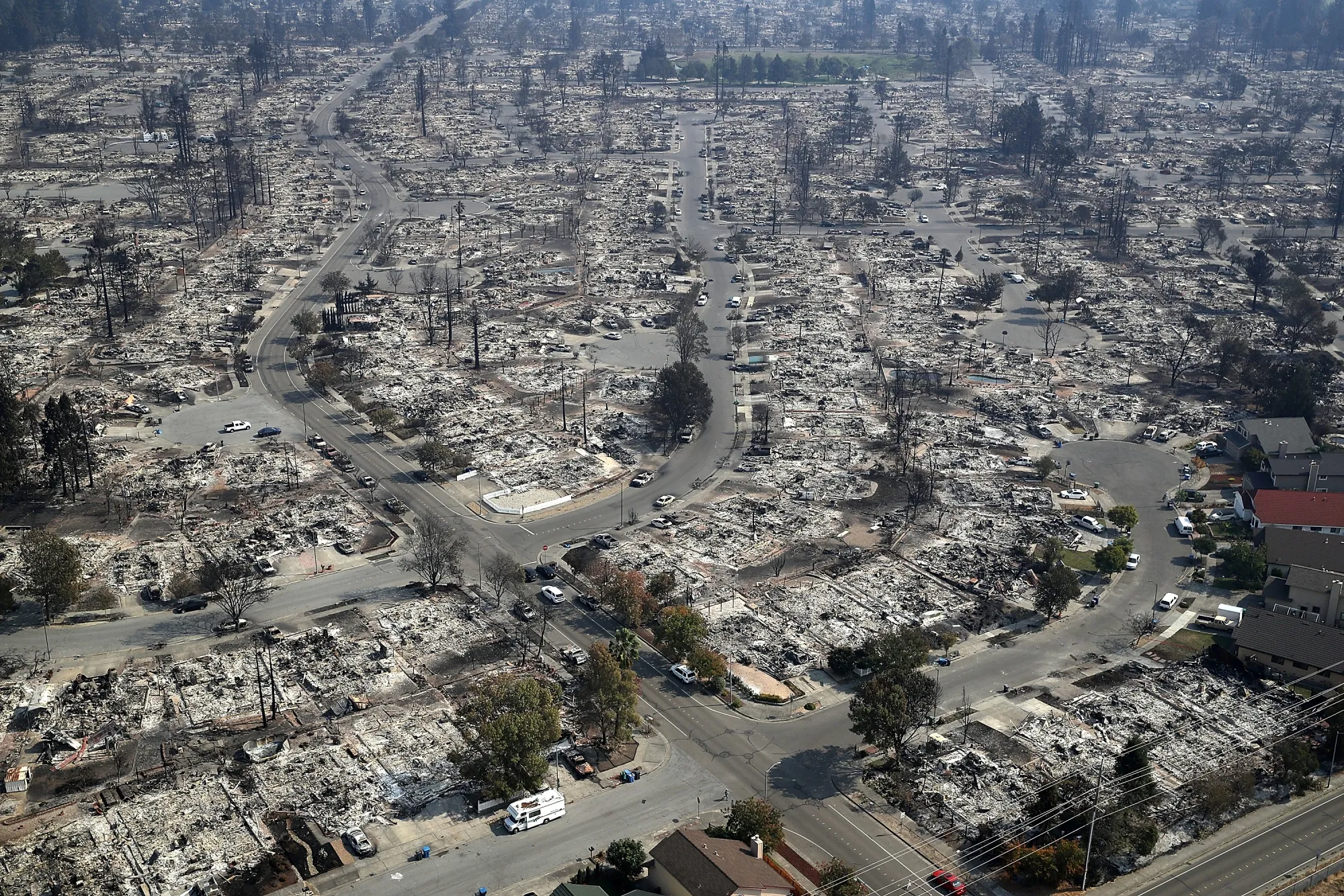2017年10月11日,图布斯火灾摧毁的圣罗莎的房屋。摄影师:贾斯廷·沙利文(Justin Sullivan)/盖蒂图片社“他们问冰箱里的食物什么时候变质,”她说,仿佛在她的房子化为灰烬时还能检查保质期。州农保险公司还反复打电话询问她汽车的车辆识别号码,尽管她告诉他们汽车已经完全融化。