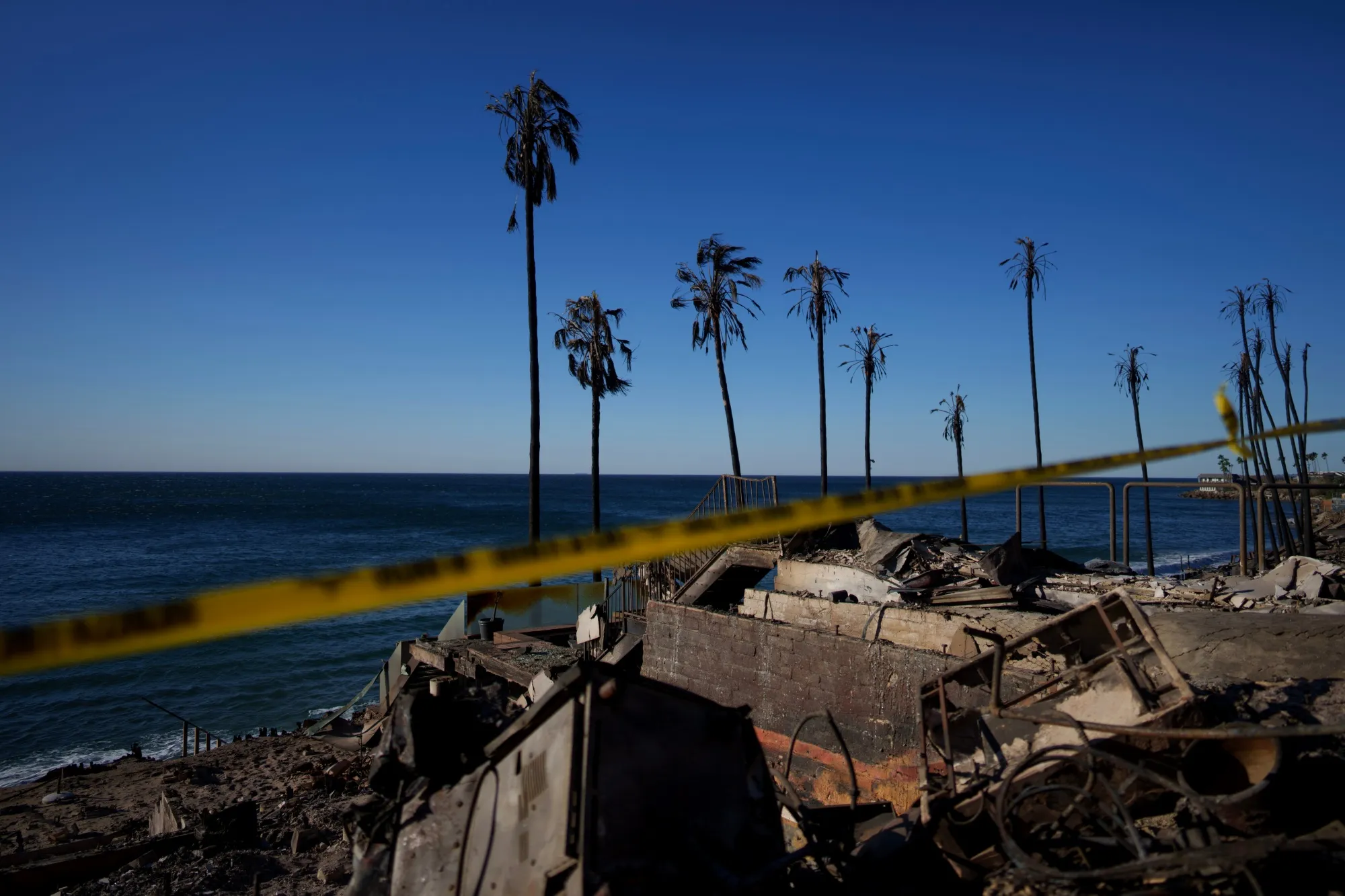 加州马里布的帕利塞德火灾后,太平洋沿岸被毁的房屋,时间为1月15日星期三。
