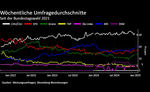 联盟候选人弗里德里希·梅茨在达沃斯强调,如果赢得选举,将重点关注经济政策的转变及其紧迫性。“德国经济多年来一直未能发挥其潜力,这并不是自2021年现任政府上任以来才出现的,”梅茨在世界经济论坛上表示。他指出,必须克服结构性缺陷,以及影响“整个工业”的竞争力不足。“我未来政府的每一个决定只有一个问题:这对我们工业的竞争力有利吗?”为了减轻能源成本,他建议对网络成本进行补贴。谈到未来的联盟,梅茨表示,联盟在二月份的选举中必须赢得“相对强大的多数”。一旦只需要一个联盟伙伴,而有两个可供选择时,“我们在战略上将处于非常强大的位置,这就是我的目标,”梅茨说。“一旦我们有了这些选择,其他两个将会非常灵活。”一项来自YouGov的选举调查显示,基督教民主联盟/基督教社会联盟目前下降了2个百分点,降至28%,社会民主党为19%(+1)——与德国选择党持平。绿党则为15%(+1)。