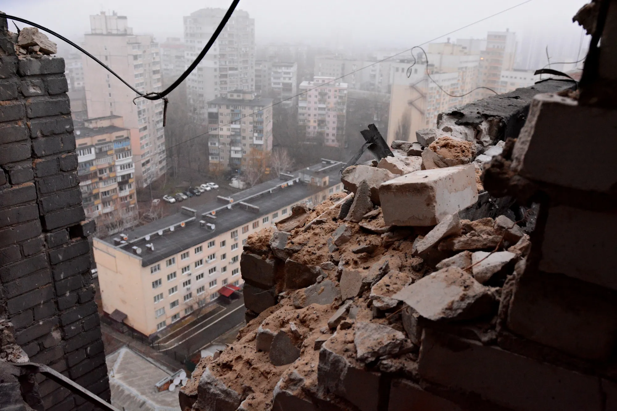 在基辅的一次俄罗斯无人机攻击中被摧毁的建筑。