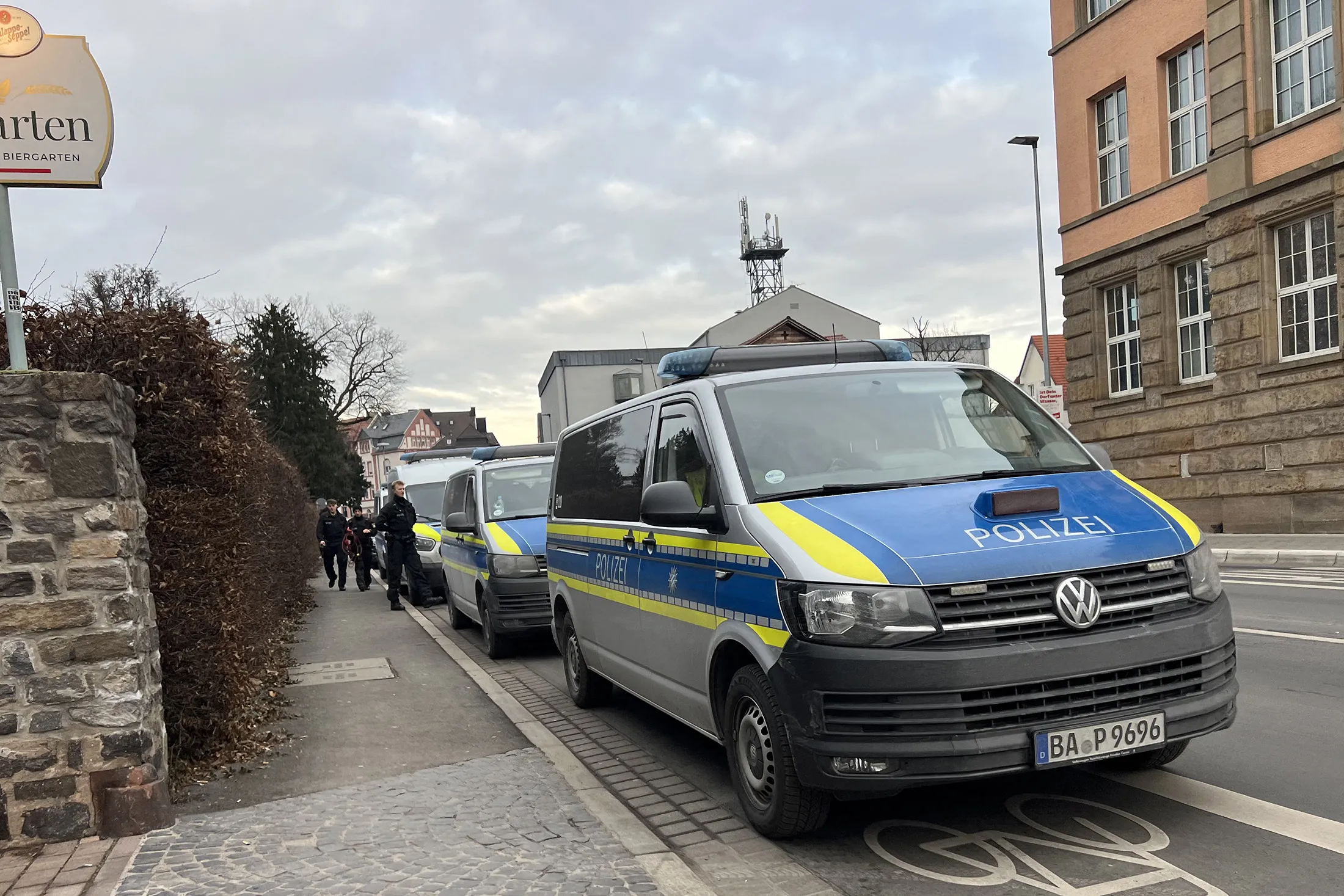 德国阿沙芬堡市刺伤事件现场附近的警车,时间为1月22日。