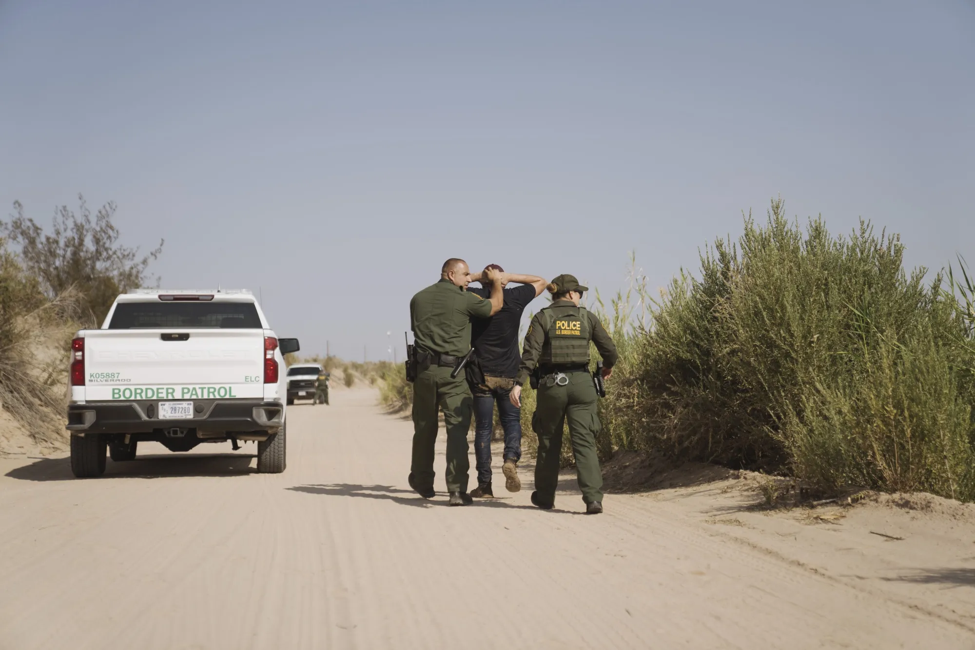 美国边境巡逻队在加利福尼亚州卡莱克西科捕获了一名靠近美国和墨西哥边境的移民。