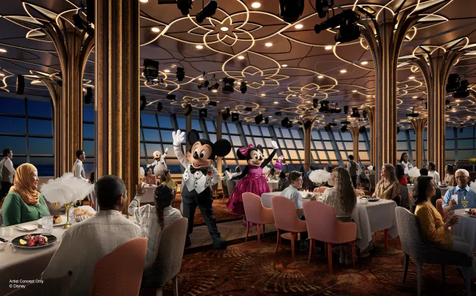 与其他迪士尼邮轮公司船只一样,将提供无限量的米奇形状冰淇淋棒和受欢迎的互动餐厅概念“动画师的调色板”的分店。它还将设有一个受 白雪公主与七个小矮人 中邪恶女王启发的成人休息室。