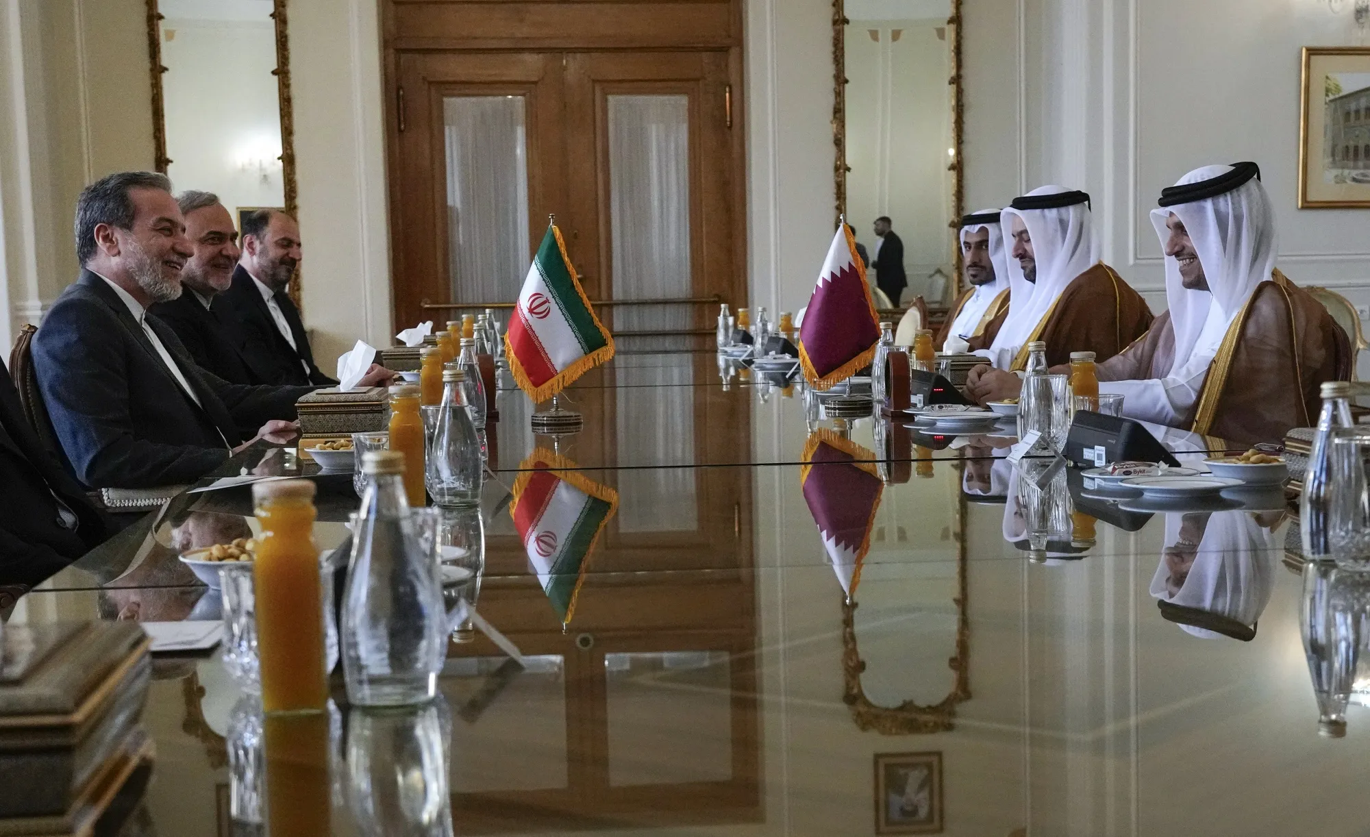 伊朗外长阿巴斯·阿拉赫奇(左)与穆罕默德·本·阿卜杜勒·拉赫曼·阿尔萨尼(右)于2024年在德黑兰会晤。摄影师:瓦希德·萨莱米/AP照片卡塔尔与伊朗也保持着建设性的关系——两国共享世界上最大的天然气田。一个目标是利用这一点帮助缓解德黑兰与华盛顿之间的紧张关系,外交官表示。在特朗普的第一任期内,这种紧张关系达到了顶峰,新任美国总统监督了一项被称为“最大压力”的战略,放弃了关于伊朗核活动的协议,并实施了严厉的经济制裁。