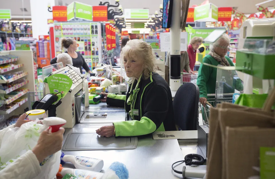 一名员工在英国沃特福德扫描顾客的购买商品。