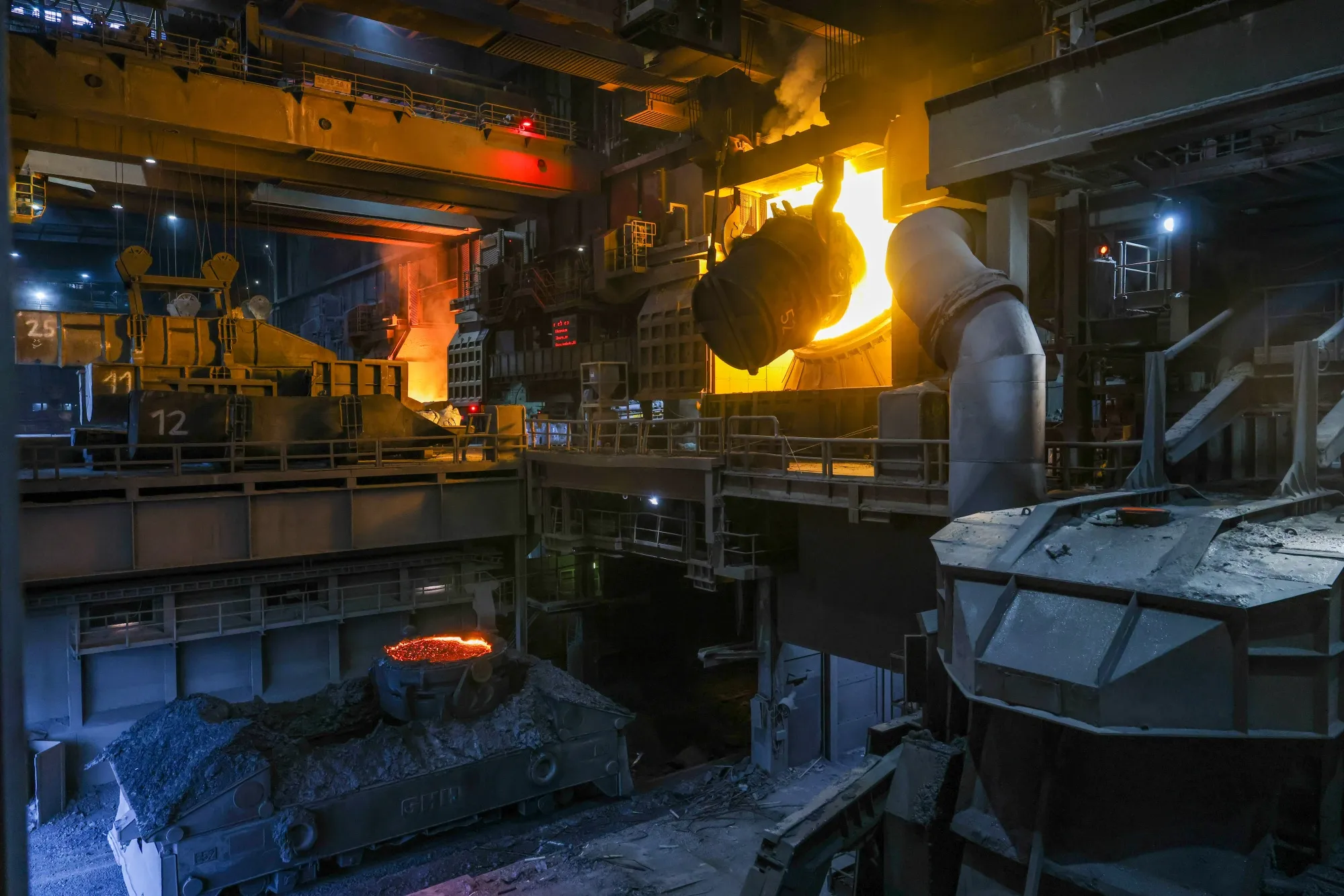 德国杜伊斯堡的蒂森克虏伯公司工厂的原钢加工。