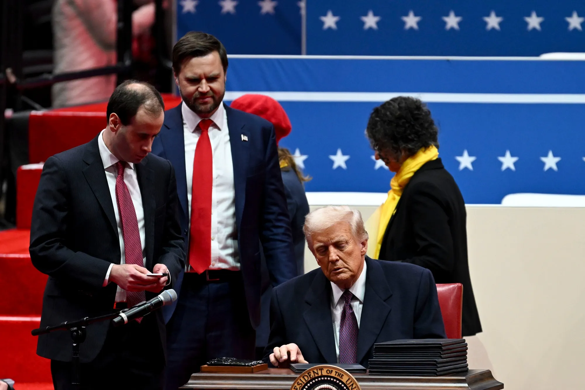 唐纳德·特朗普在华盛顿特区的资本一竞技场参加第60届总统就职游行时签署了一项行政命令,时间是1月20日。摄影师:维克托·J·布鲁/Bloomberg达沃斯小组表示首席执行官需要关注气候适应。极端天气事件的指数增长证明公司必须缩小适应与减缓之间的差距,波茨坦气候影响研究所的约翰·罗克斯特姆在小组讨论中表示。