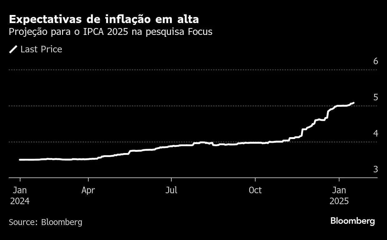 除了汇率压力外,食品价格的冲击和经济活动增长超过潜力也被银行经济学家列为2025年IPCA前景恶化的理由。银行对今年的通胀预测在5%左右或更高,远高于中央银行的目标3%。