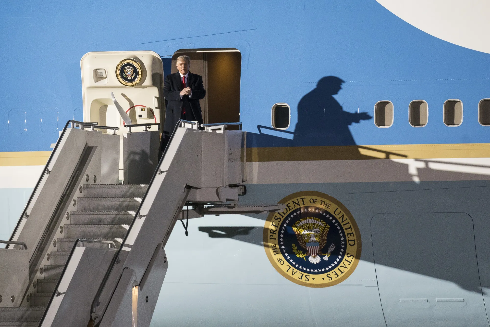 特朗普总统于2020年9月在明尼苏达州杜鲁斯的“让美国再次伟大”集会上下飞机。摄影师:本·布鲁尔/彭博社让这些巨型喷气机投入使用是特朗普的优先事项,他经常将其固定价格合同作为他在第一任期内能够谈判成本节约的例子。离开办公室后,他甚至在马阿拉歌的桌子上保留了一架下一架总统飞机的模型。