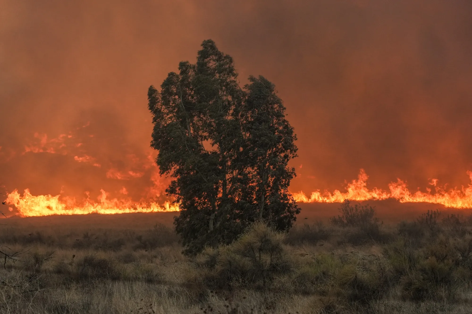 南加州的条件对消防员来说再糟糕不过了。经过几个月没有显著降雨,地形干燥得像骨头。强烈的圣安娜风剥夺了土地剩余的水分,使得地面作业的队伍面临危险。时速高达100英里(161公里)的阵风 暂时使 消防飞机停飞数小时。