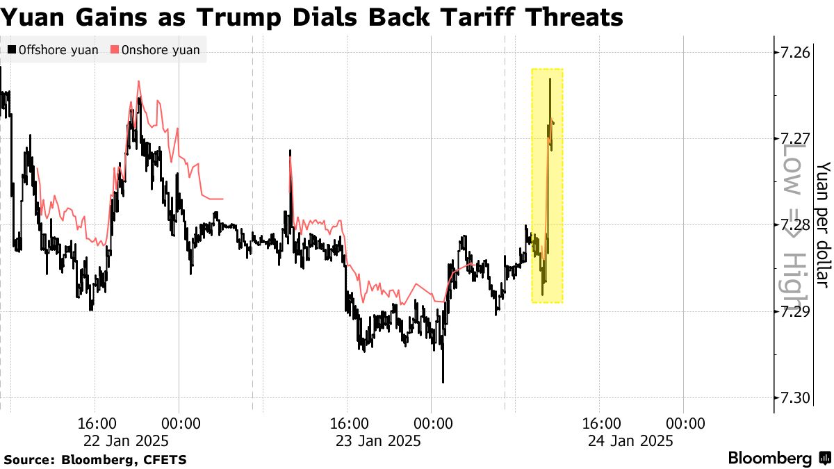 自特朗普就职以来,投资者主要关注他在贸易方面的行动,而不是他所说的话,在他最初的几天没有带来他在竞选中承诺的全面新关税后,谨慎乐观。随着交易者得出对中国出口征收10%关税的浮动远低于之前提到的60%的结论,美元走弱而人民币走强。