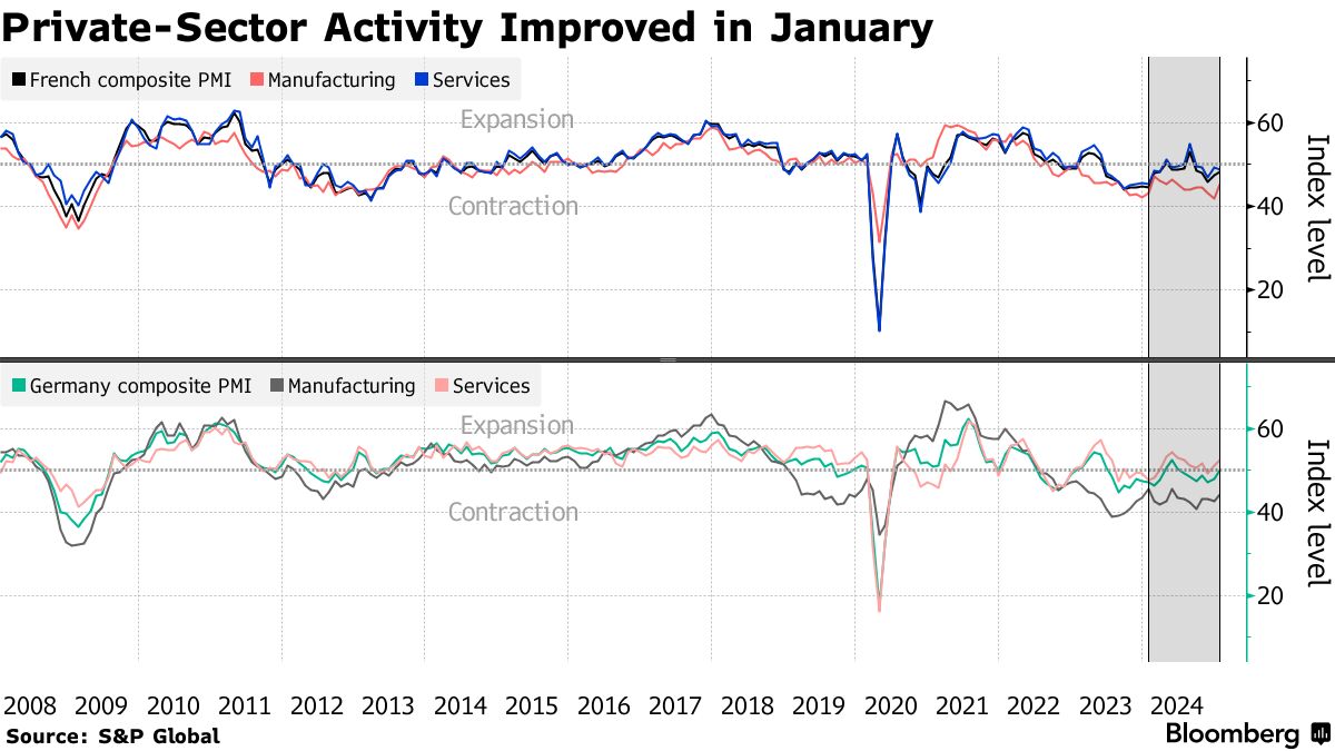 S&P全球的综合采购经理人指数在1月份上升至50.1,略高于区分增长与收缩的临界值。经济学家原本预计该指标将继续指向活动收缩。