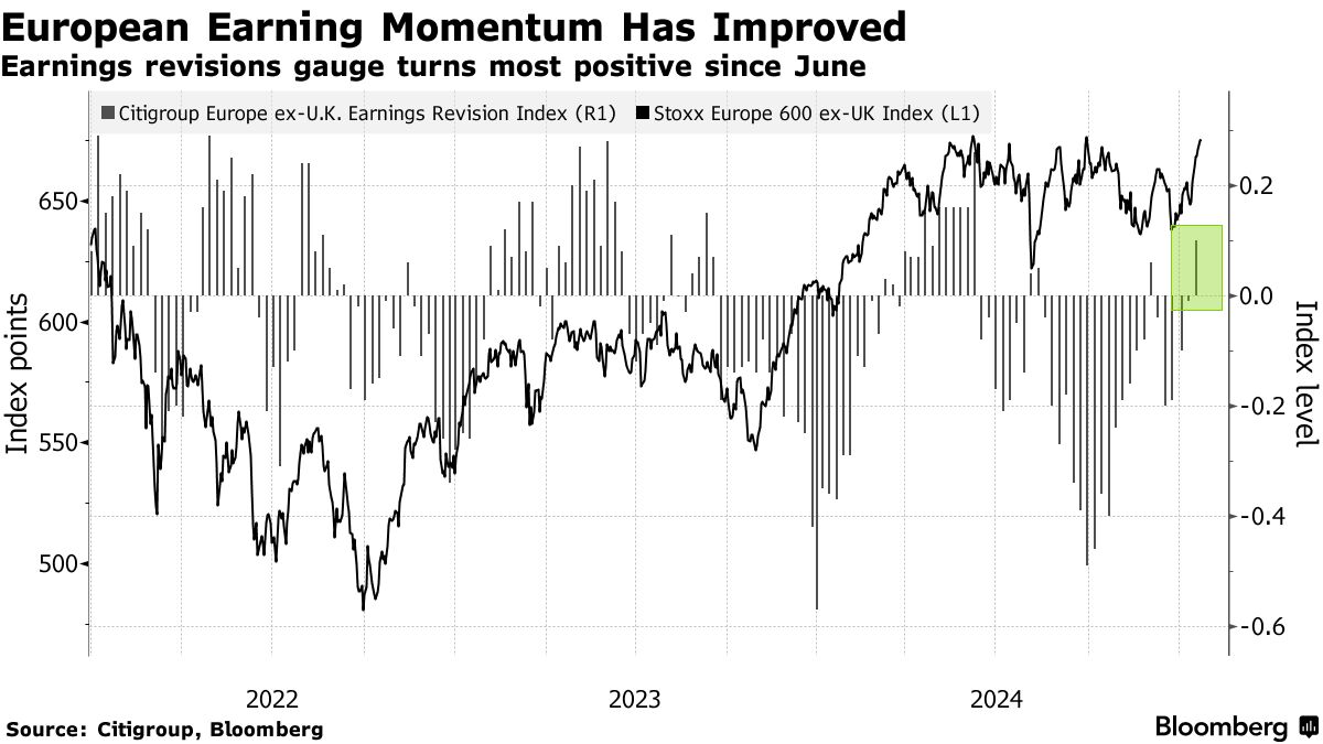 今年的盈利预期似乎相对较高,尤其考虑到该大陆经济增长乏力。许多策略师,包括法国兴业银行、瑞银和摩根大通的分析师,认为每股收益增长远低于市场共识。然而,根据花旗集团对盈利修正的评估,分析师们已经停止下调预期。