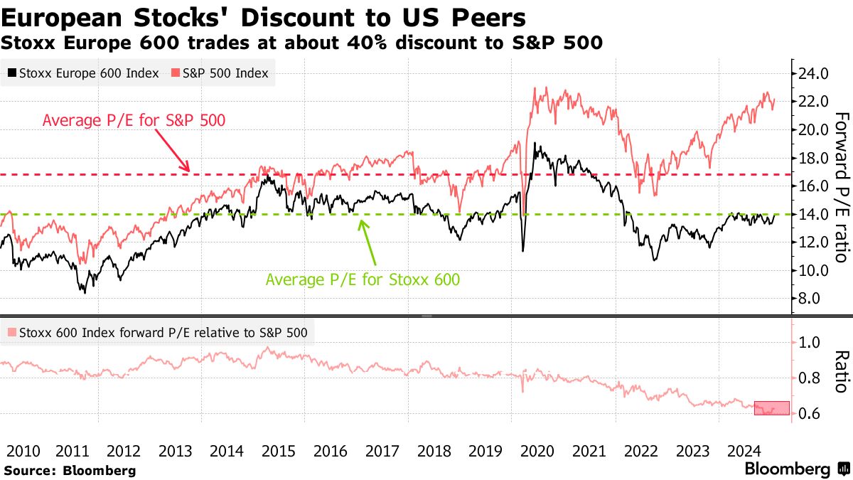 调查结果与欧洲股市的乐观基调形成对比,投资者在过去几周一直希望增加风险,同时从非常昂贵和集中化的美国基准中进行多样化。斯托克600的前瞻市盈率约为13.9倍,接近美国的历史40%折扣,但这一差距取决于欧洲大陆能否实现2025年共识预期的7%每股收益增长。
