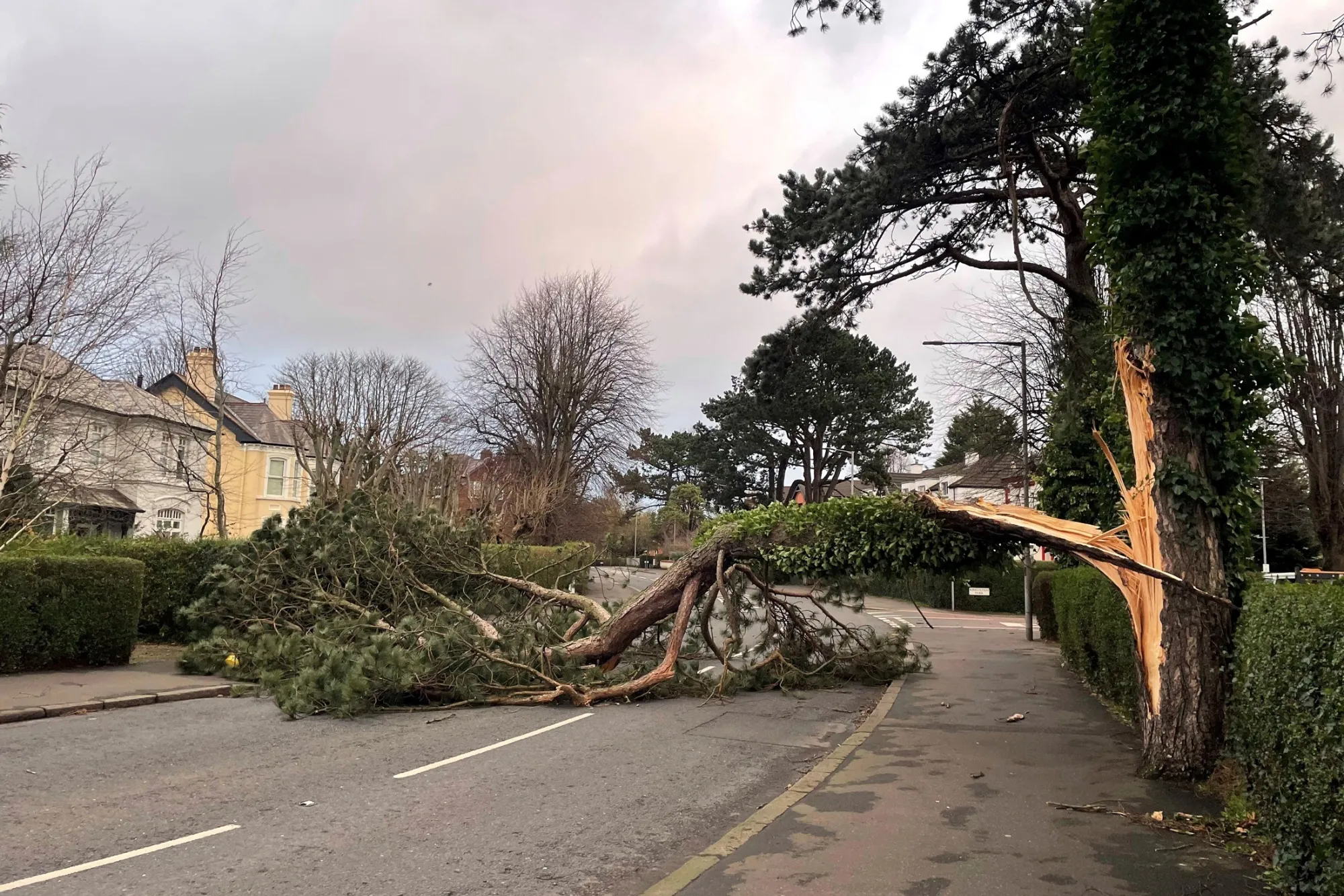 飓风强度的风袭击了爱尔兰和英国,导致数千个家庭和企业停电,并扰乱了该地区的交通。