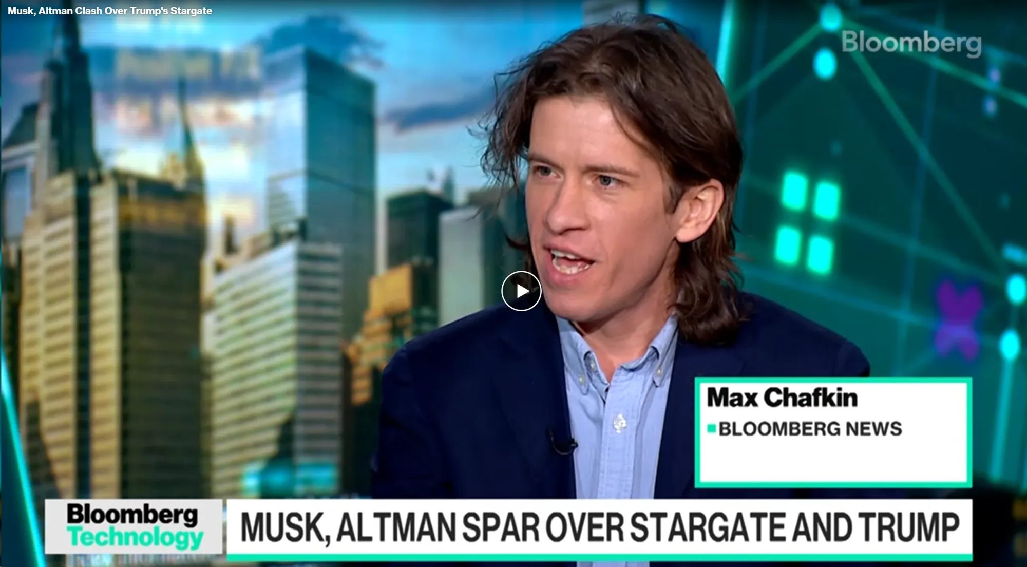 彭博社的马克斯·查夫金加入了 彭博科技,讨论埃隆·马斯克与 OpenAI 的山姆·阿尔特曼之间关于 AI 星际之门项目的公开冲突。