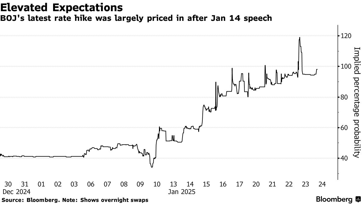 中央银行似乎通过副行长氷野良三在1月14日会议前一周的讲话引导市场走向加息。对一些观察者来说,这看起来像是一个精心安排的场合,旨在传达一个暗示。果然,氷野表示董事会将在1月会议上考虑加息的必要性。