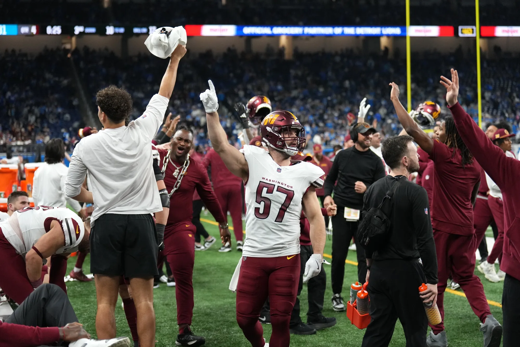 华盛顿指挥官队在上周末的季后赛胜利中庆祝。
