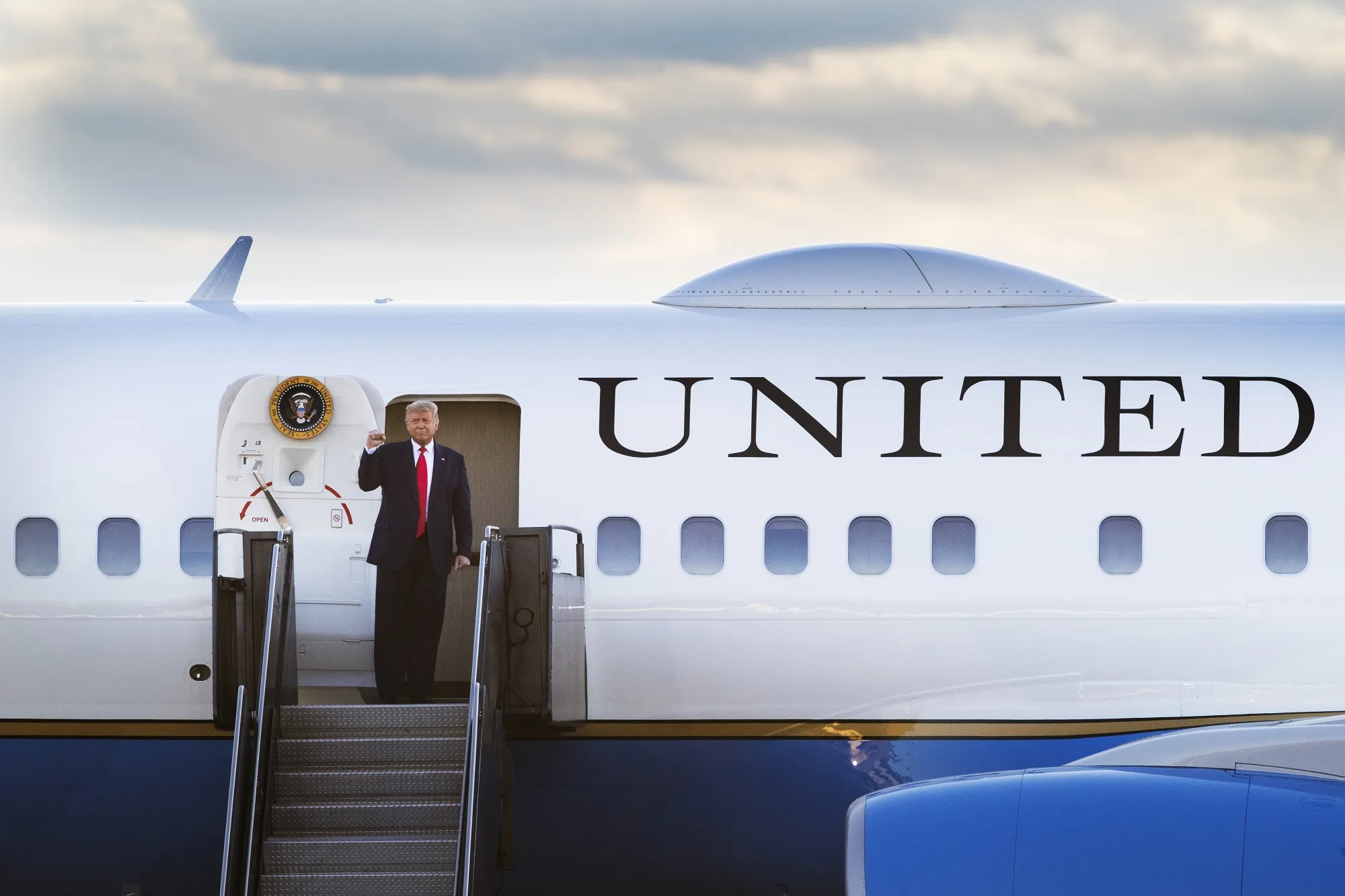 唐纳德·特朗普在2020年下飞机空军一号摄影师:亚当·格兰兹曼/彭博社在12月18日下午3点前,一位令人惊讶的访客出现在波音公司的军事飞机设施,位于德克萨斯州圣安东尼奥:第一伙伴埃隆·马斯克。