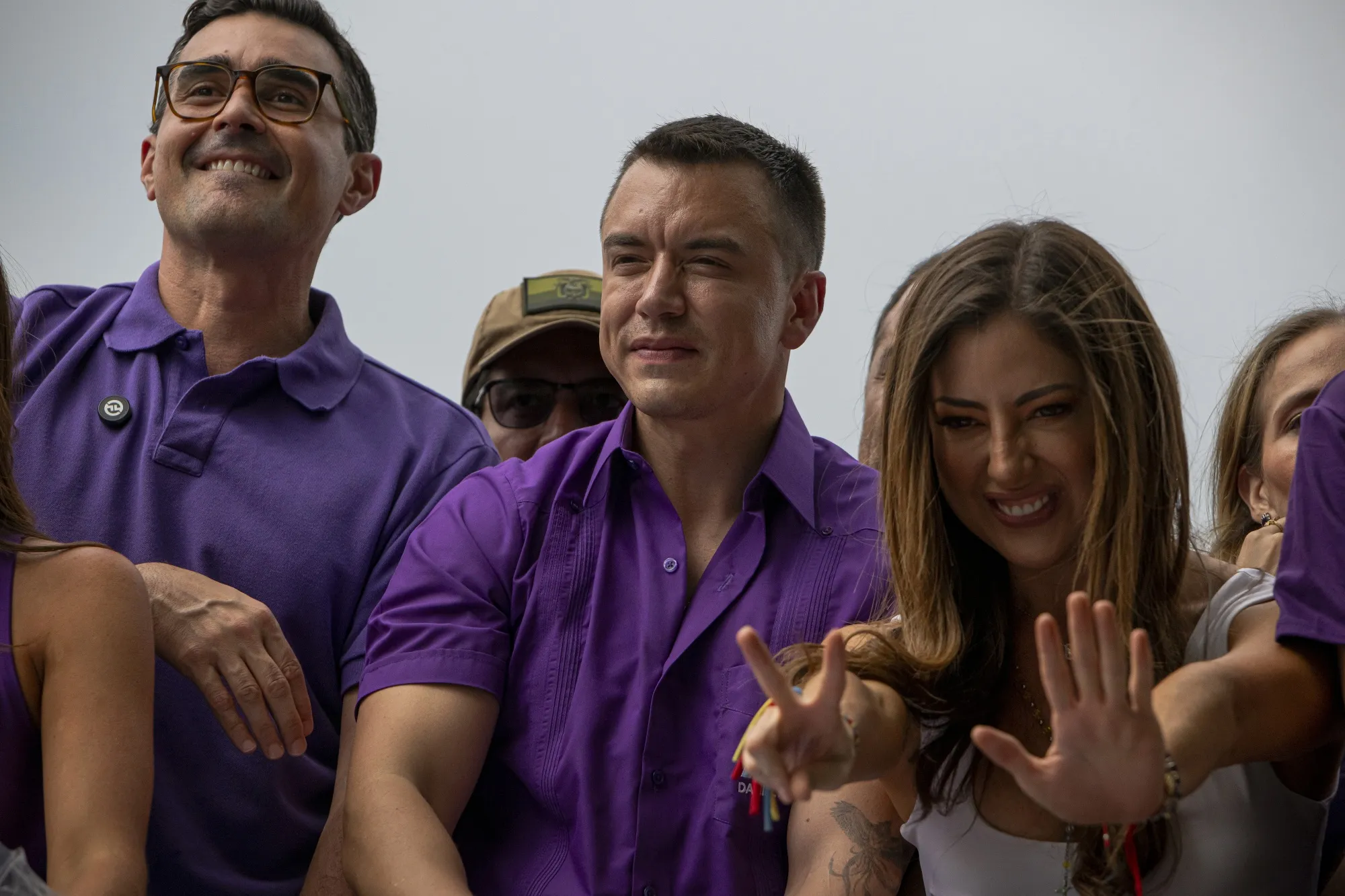 厄瓜多尔总统丹尼尔·诺博亚(Daniel Noboa)在厄瓜多尔瓜亚基尔的竞选集会上骑车参加车队,时间是1月10日。