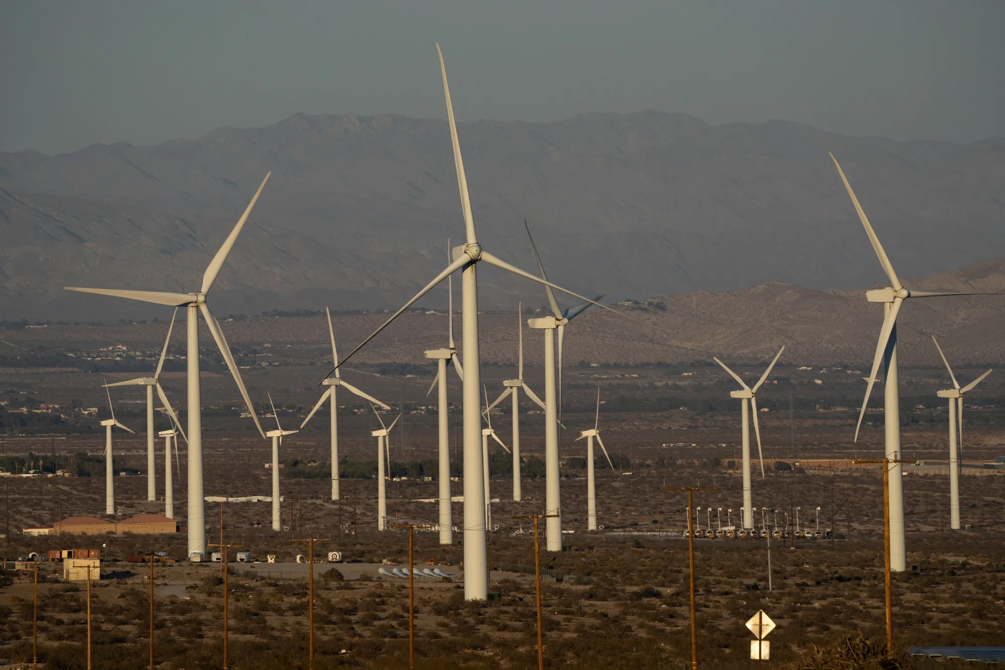 2021年,加利福尼亚州怀特沃特的圣戈尔戈尼奥山风电场的风力涡轮机。摄影师:Bing Guan/Bloomberg### 液化天然气出口禁令解除