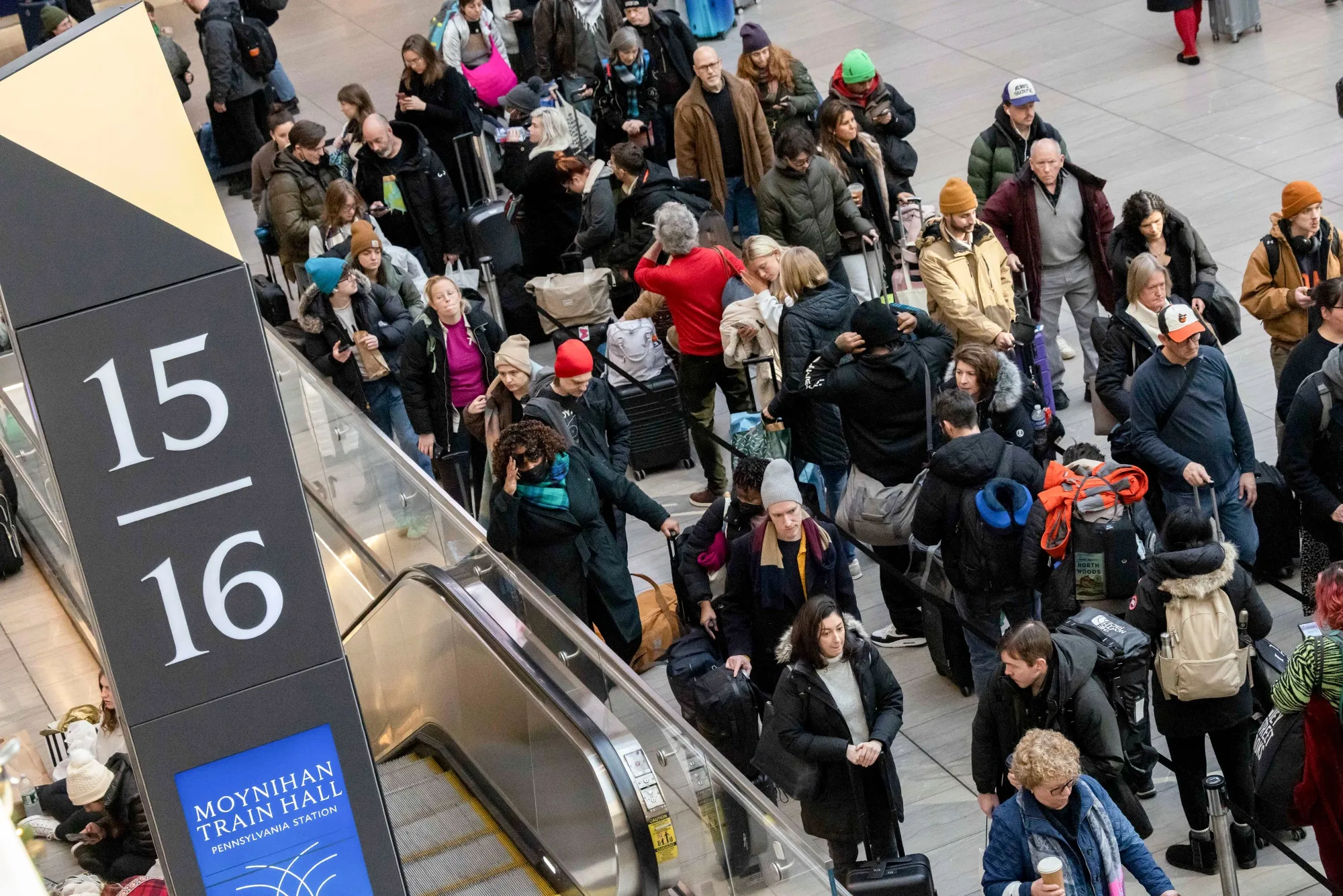 通勤者在纽约的宾州车站的莫伊尼汉火车大厅等候。