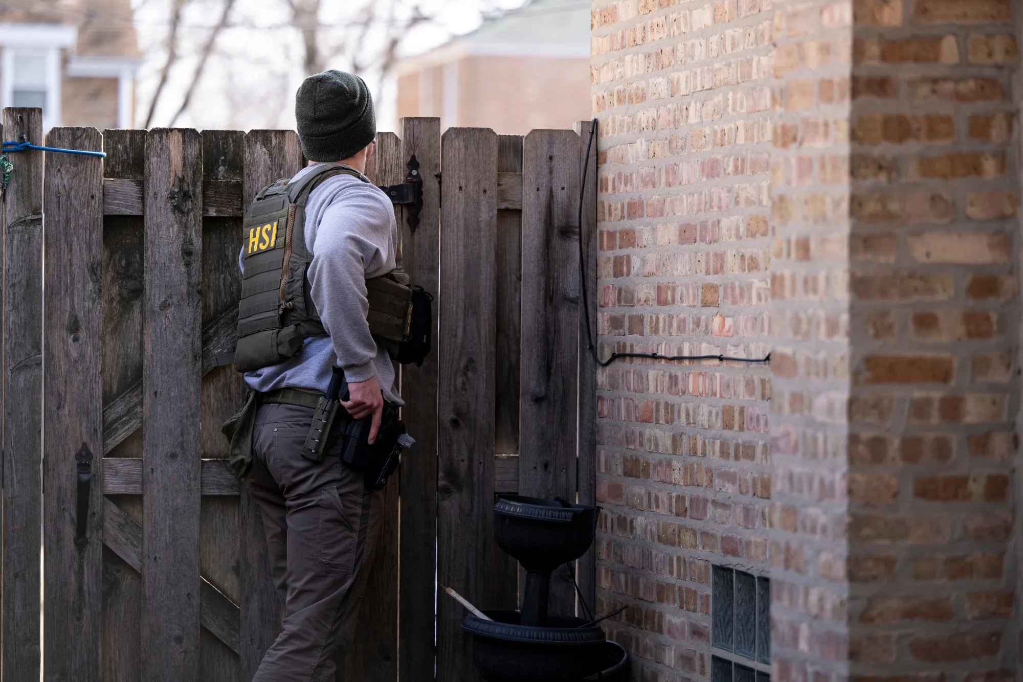 美国移民和海关执法局(ICE)特工在周日的突袭中敲响了伊利诺伊州芝加哥一处住宅的门。