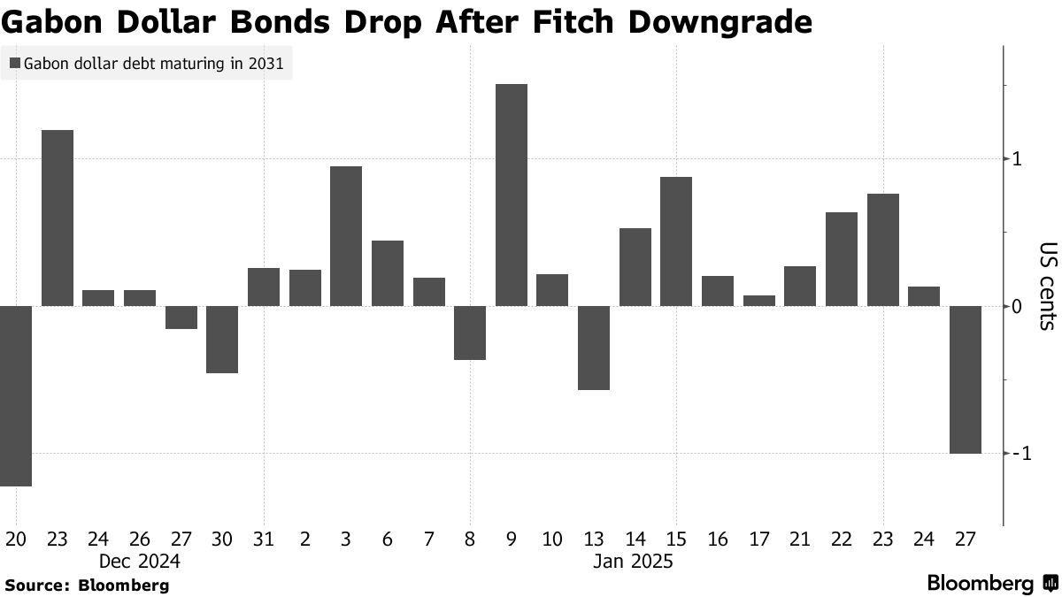 加蓬的美元债券在10天内首次下跌,此前惠誉评级将该国的评级 进一步降至垃圾级。