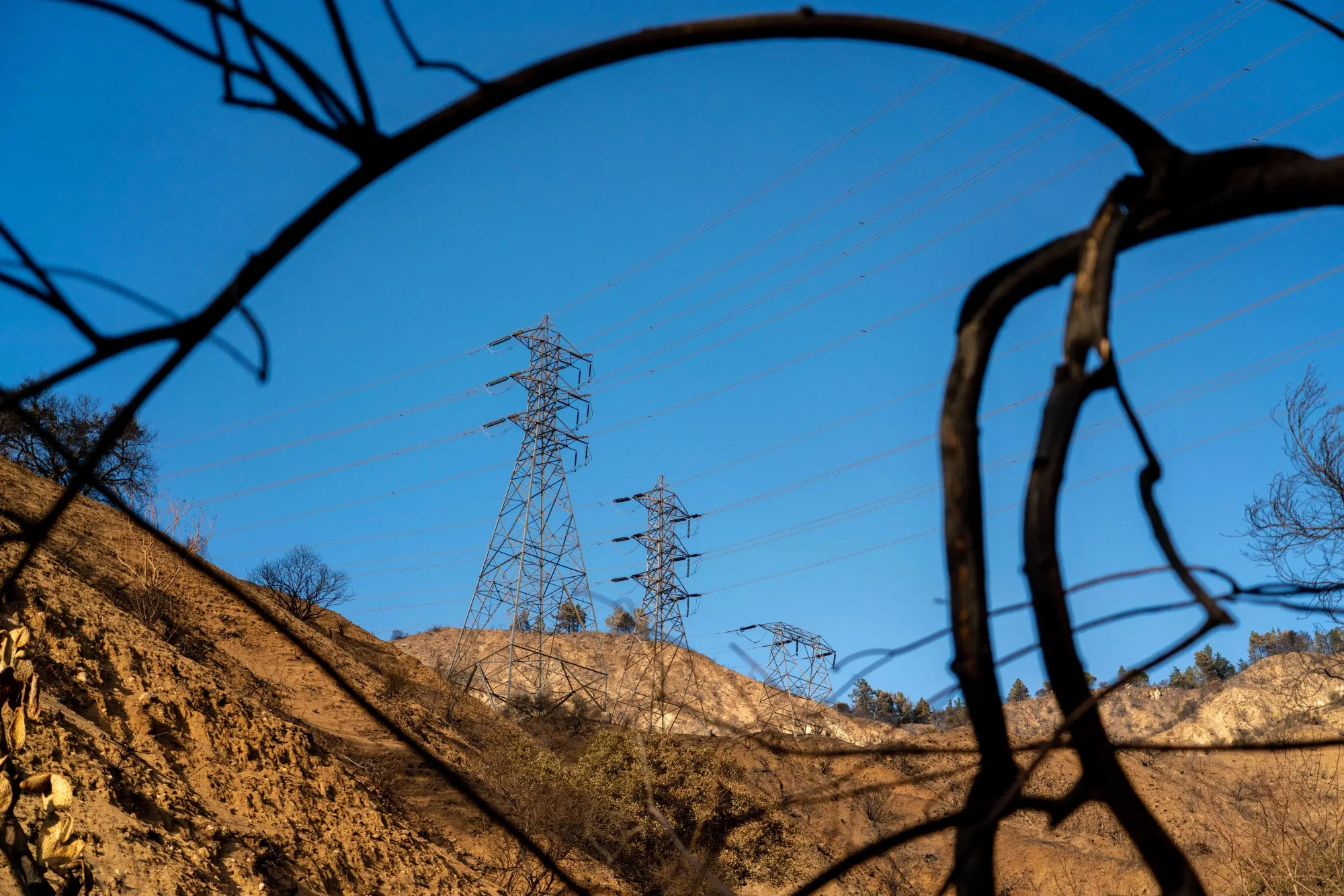 1月16日,伊顿峡谷的一座输电塔。摄影师:凯尔·格里洛特/彭博社阅读更多:爱迪生保持洛杉矶电力线路运行的举动引发审查