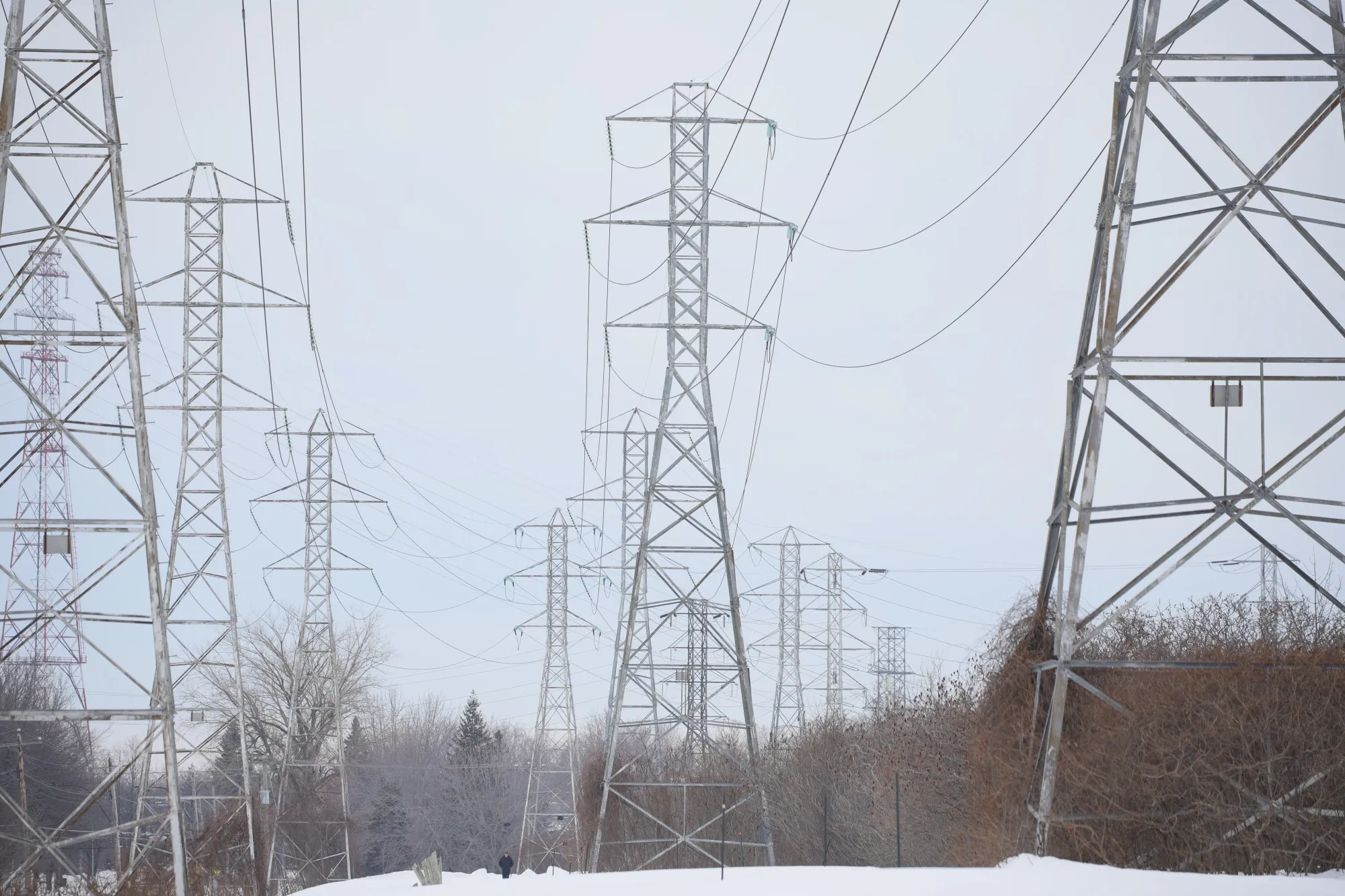 蒙特利尔一个住宅区的电力线。魁北克和安大略省是美国的重要电力供应商。