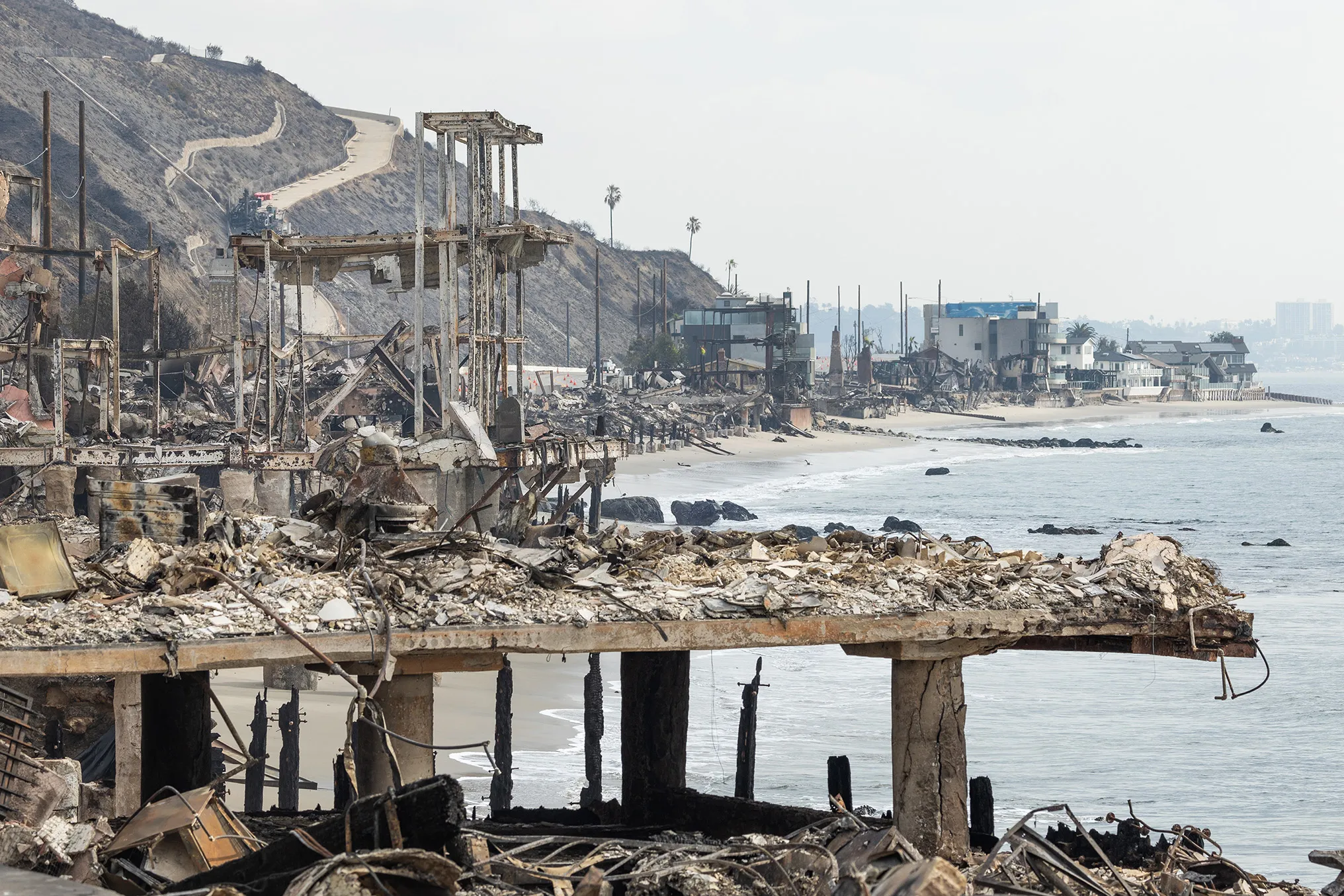 加州马里布太平洋海岸公路沿线的海滨住宅在1月25日被帕利塞德火灾摧毁。摄影师:Myung J. Chun/洛杉矶时报### 明天你需要知道的事情
