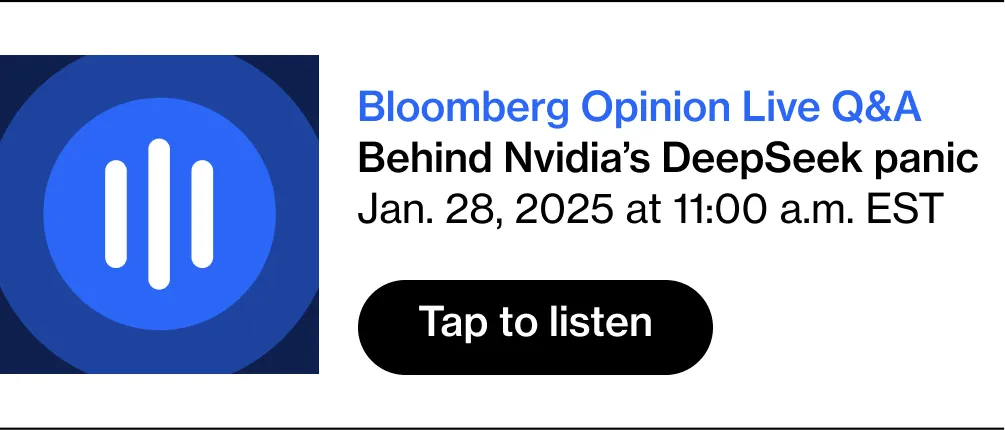 感谢所有上周参与我与乔纳森·莱文和坎迪斯·扎卡里亚斯关于通货膨胀的聊天的人。本周三,纽约时间上午11点,我们将继续讨论——还有什么呢?——DeepSeek。戴夫·李和帕米·奥尔森(她字面上 写了关于人工智能的书)将尝试向我和乔纳森解释这一切。要收听第二次Opinion直播问答,并提出您自己的问题,彭博订阅者可以访问 这个链接。