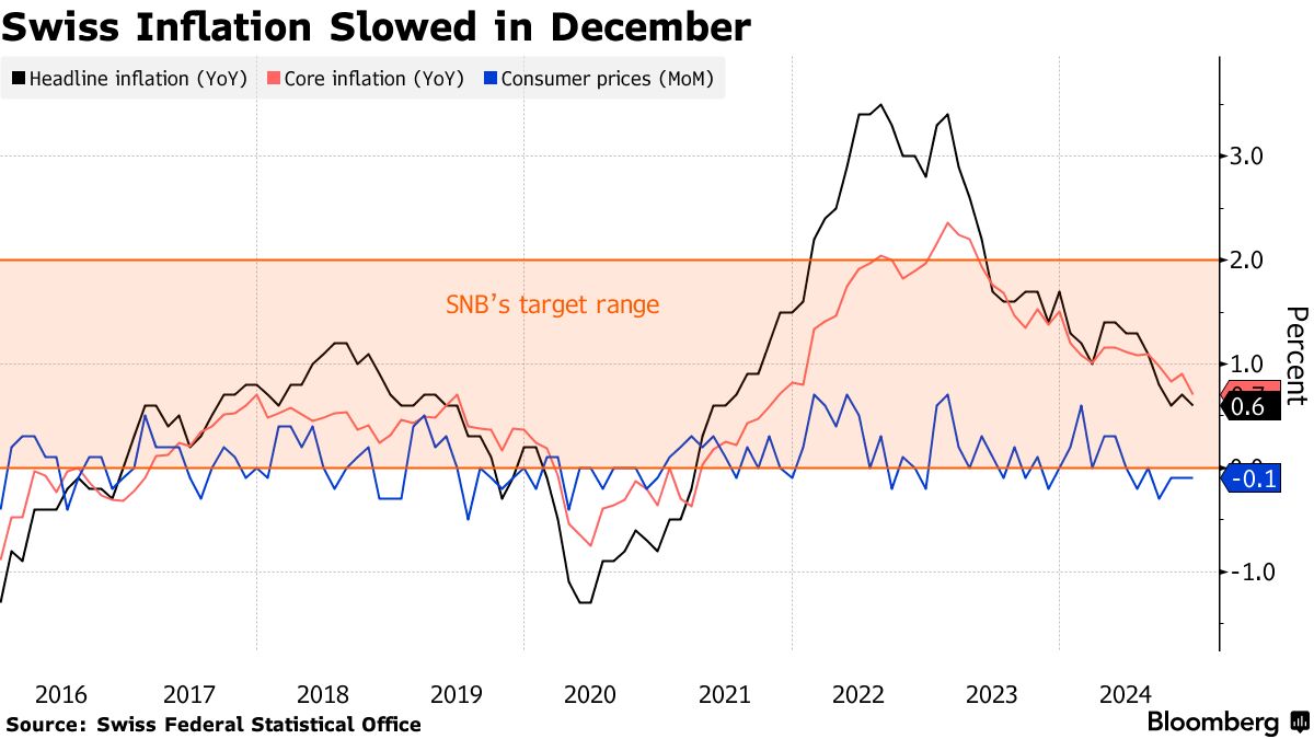 施莱格尔周一表示,瑞士国家银行在12月进行的“显著”的半个百分点利率削减已将通货膨胀带入整个预测期的目标范围。